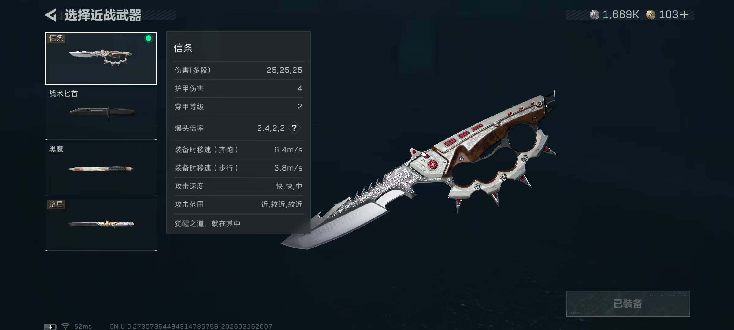 【近战皮肤】:近战-暗星,近战-信条,近战-黑鹰