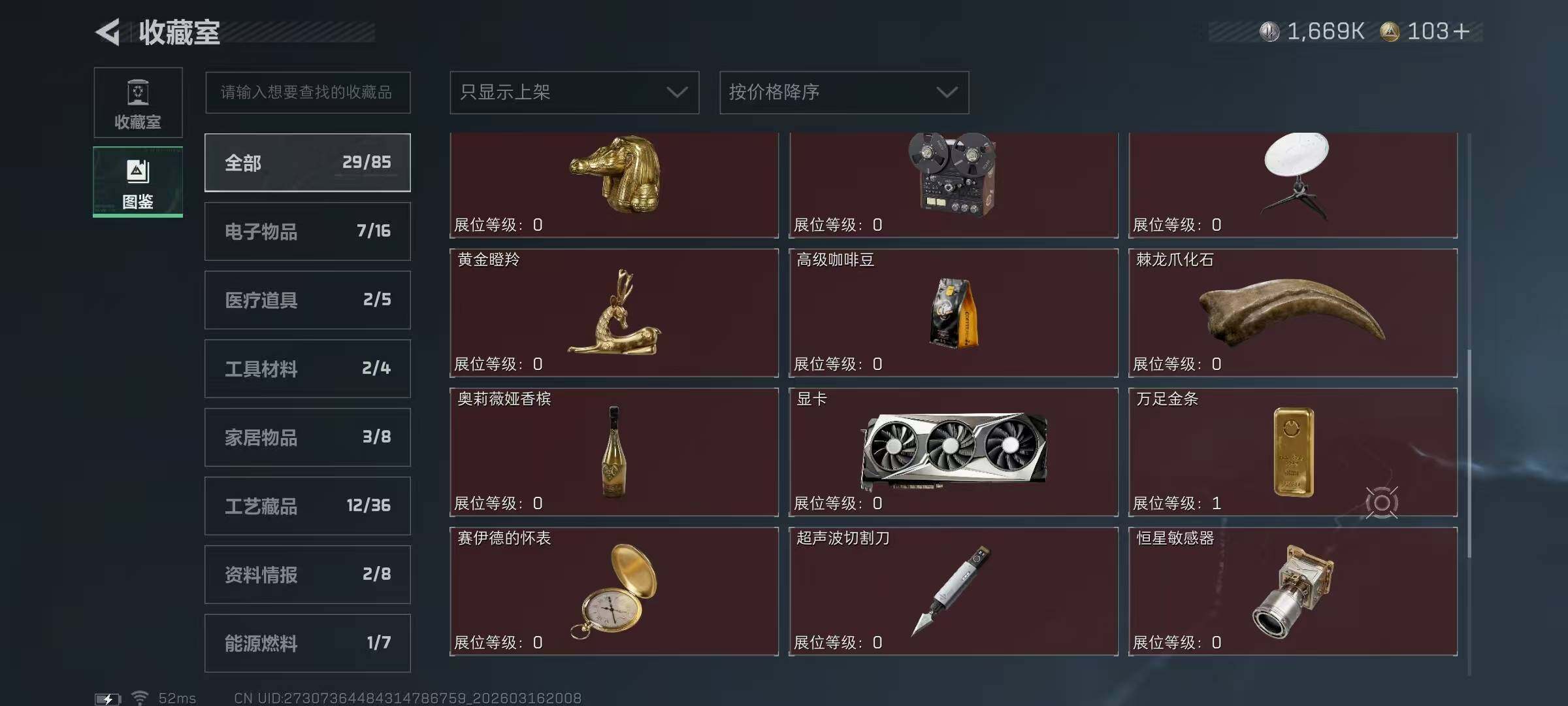 【SJ1423】【信条暗星带S8高级3X2】60级/总资121M/流资83M/103点卷/AS,Val突击步枪-悬赏令(优品A)刀皮(信条+暗星)红狼(蚀金玫瑰)乌鲁鲁(荒原猎手)露娜(金牌射手)/8级仓库4级体力4级负重1级潜水/非洲之心/68发AW子弹