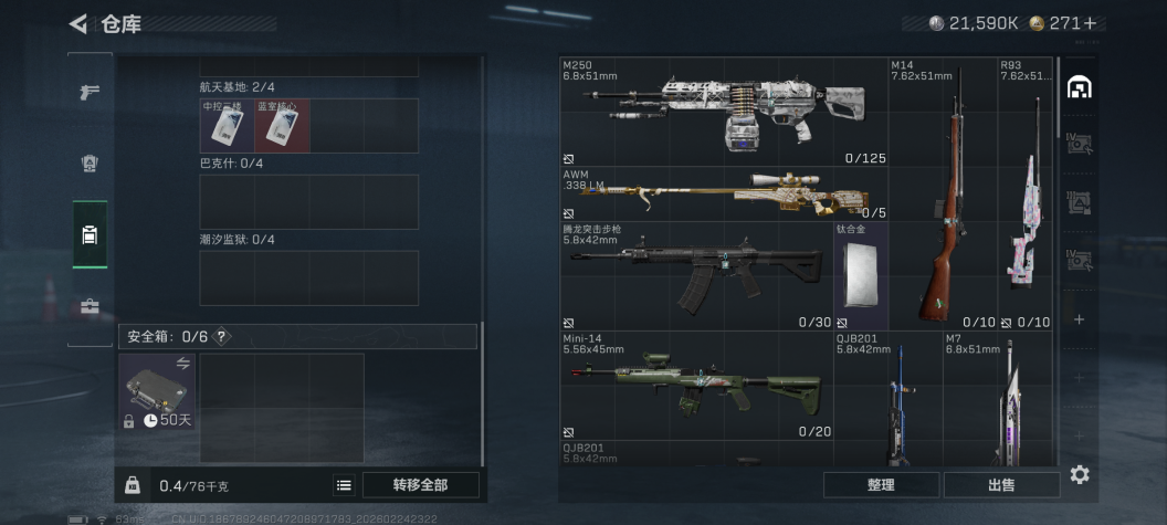 WLSJZ942【总资产66.5M 暗星 通行证已开 】三端互通-总价值66.5M-哈夫币21590k-烽火地带等级45-烽火地带段位铂金【干员皮肤】露娜-金牌射手【近战武器】黑鹰 暗星【枪皮】M4A1突击步枪-粉色涂装 M4A1突击步枪-高雅黑 M4A1突击步枪-繁盛 AKM突击步枪-肃杀 QBZ95-1突击步枪-高雅黑 QBZ95-1突击步枪-海浪 QBZ95-1突击步枪-海色 QBZ95-1突击步枪-2026 AKS-74U突击步枪-磐石 AKS-74U突击步枪-冰天雪地 ASh-12战斗