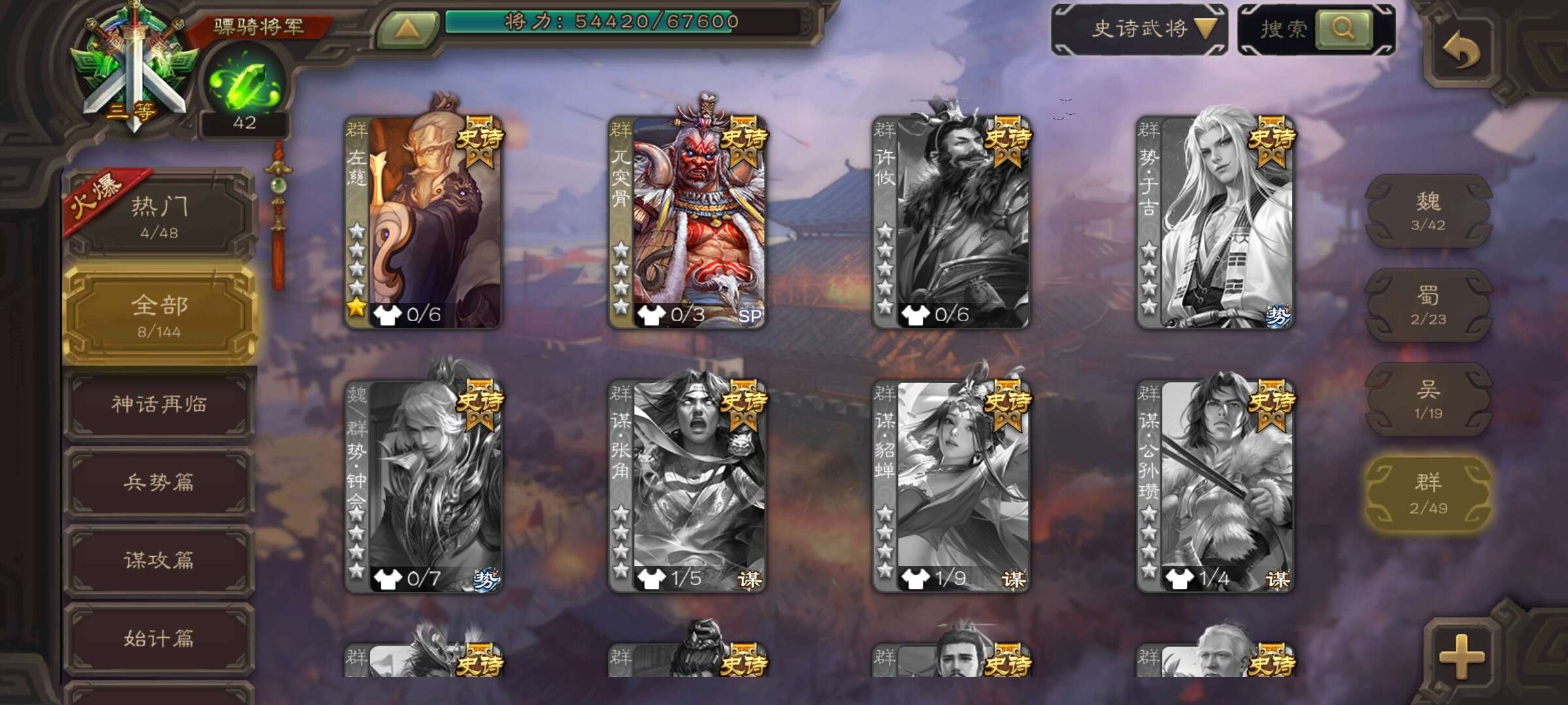史诗武将数量:
