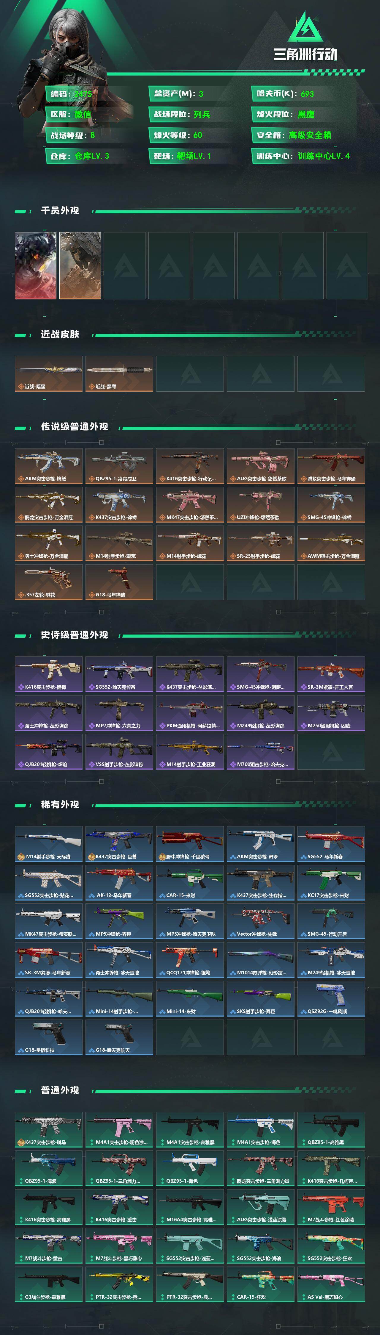 3m总资产-693k哈夫币-60烽火等级-黑鹰-8战场等级-列兵