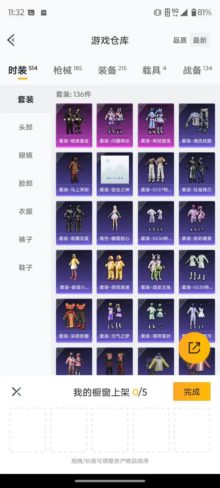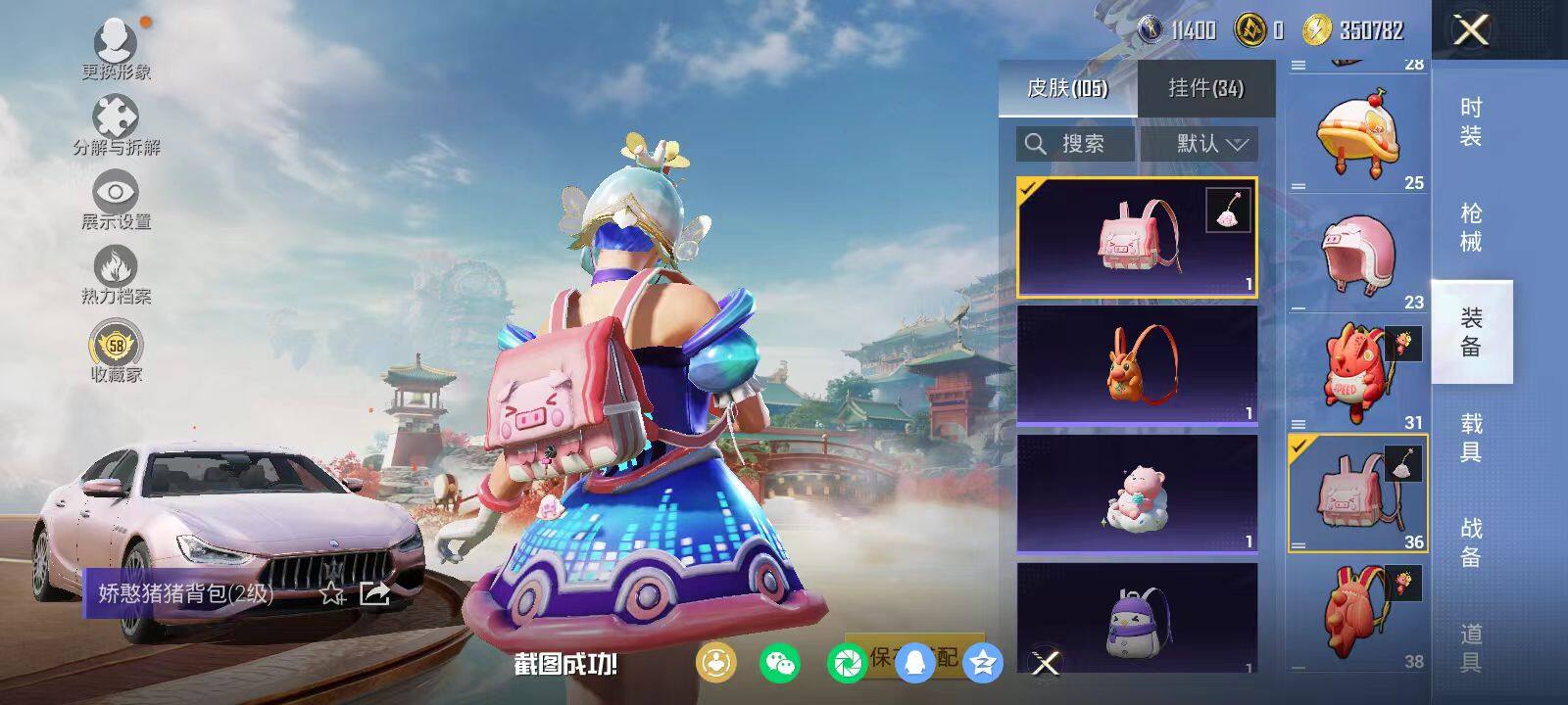 安卓 手Q-3粉装-3特效枪-4载具-1粉色飞行器-59451热力值-14王牌印记-136套装-185枪皮