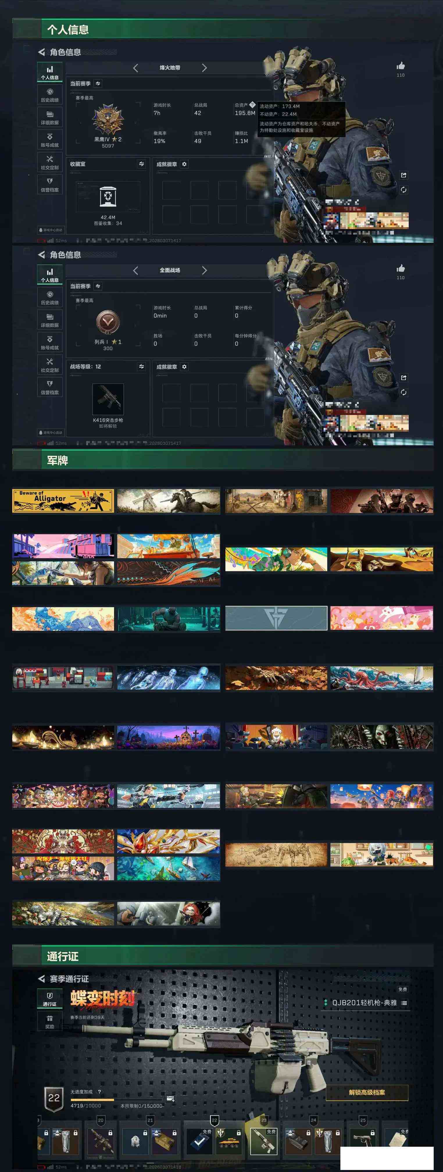 总资产195m 等级60 137发aw 42个咖啡豆 特勤体