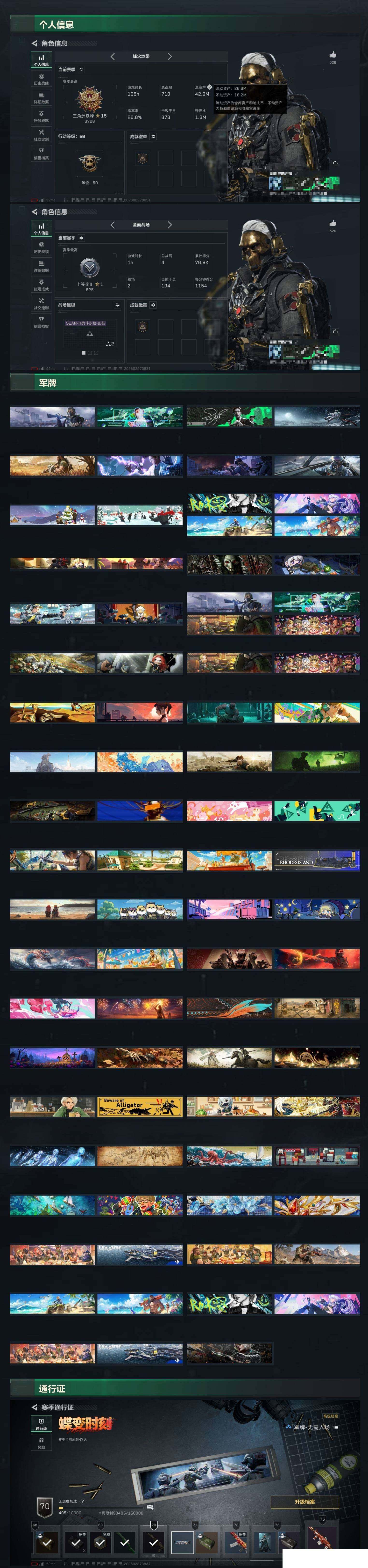 总资产42m 等级60 赛季33 特勤体力6负重6 暗星捆绑