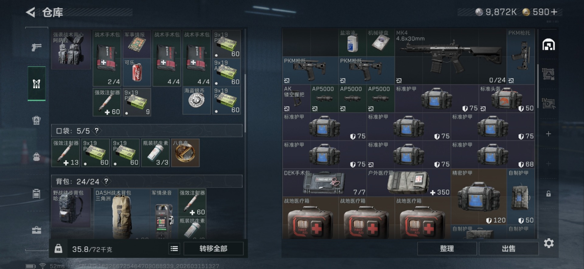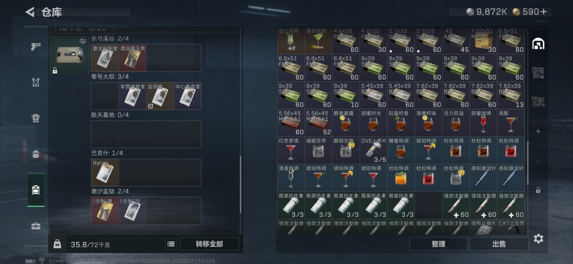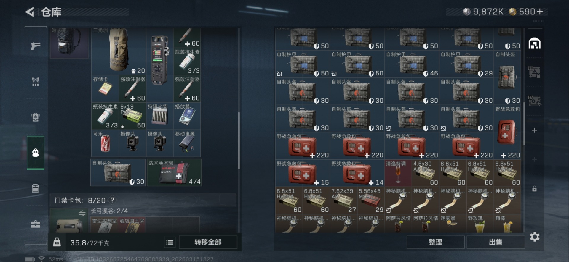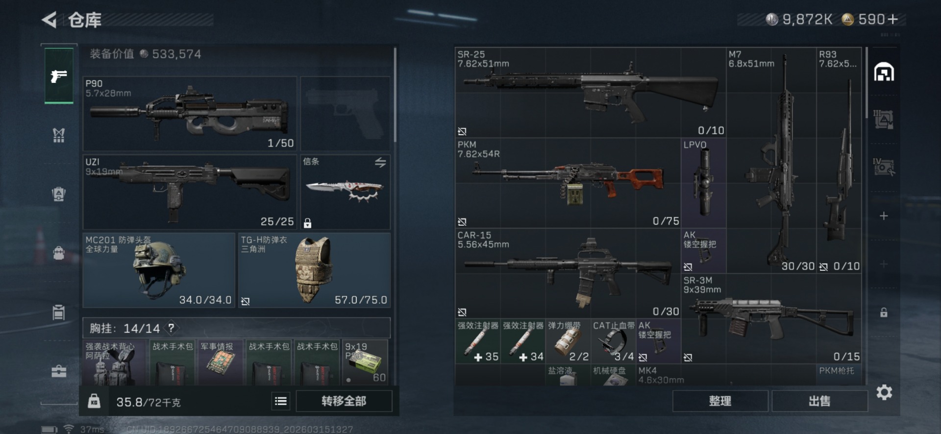总资产:42.3M 2干员外观 1近战传说 12传说枪械 哈夫币:9.872K
