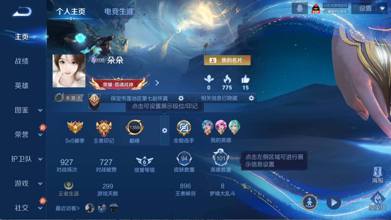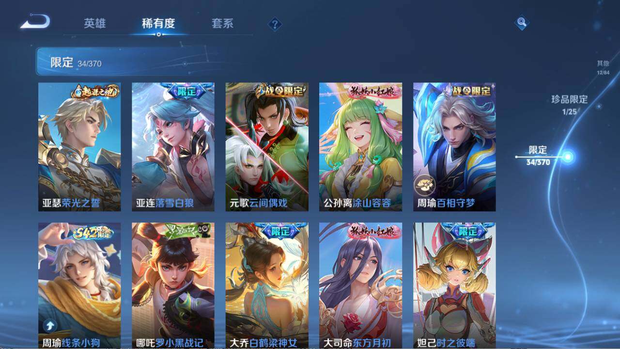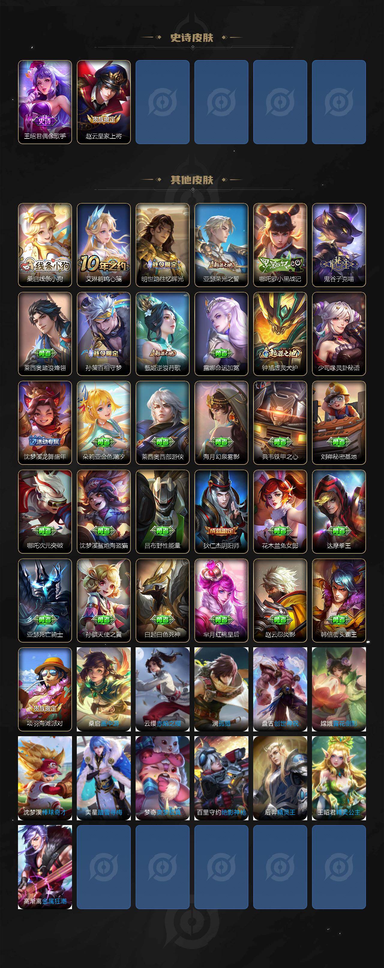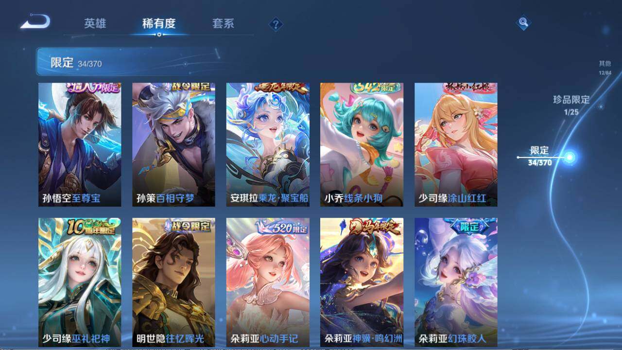 安卓Q-V7-最强王者段位-101英雄-94皮肤-2典藏皮肤-1珍品传说-10传说-37史诗