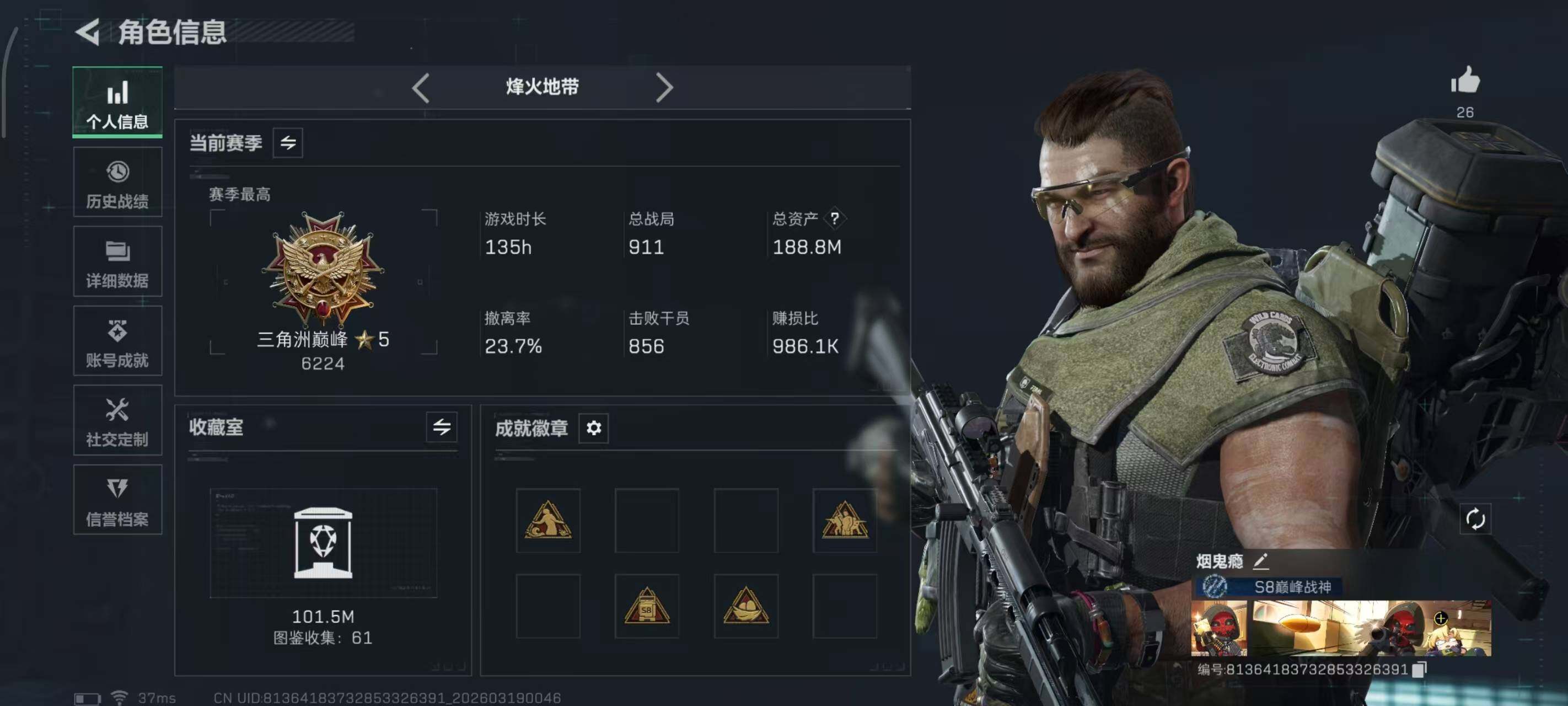 【SJZYT586】总资产(M):188M/哈夫币(K):252K/哈夫币(K):252K/传说枪皮数:17/全面战场等级:17_段位:上等兵/烽火地带等级:60_段位:黑鹰/骇爪-维什戴尔/红狼-电锯惊魂/近战-处刑者4级/近战-黑鹰/AKM突击步枪-锦绣/ASh-12战斗步枪-鹅鸭杀/AUG突击步枪-悠然茶歇/SCAR-H战斗步枪-启航/SCAR-H战斗步枪-荼蘼/腾龙突击步枪-马年祥瑞/K437突击步枪-锦绣/KC17突击步枪-电锯惊魂/MK47突击步枪-悠然茶歇/UZI冲锋枪-悠然茶歇/
