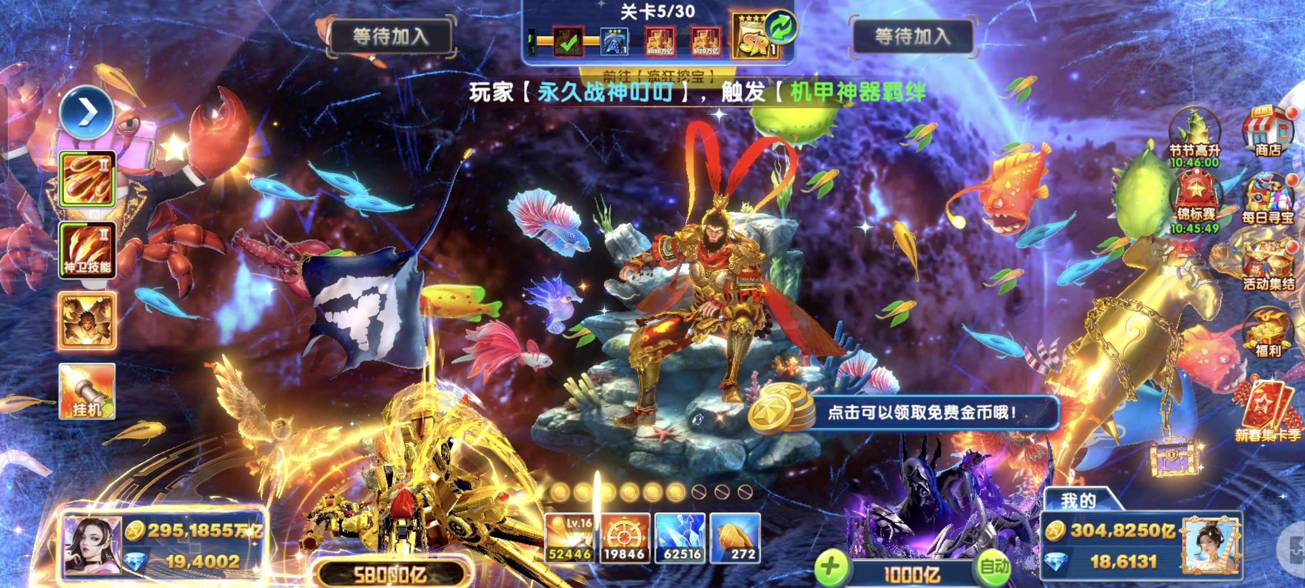 捕鱼大作战V15纯救济1.6兆,40元每天出救济金,一天起租,各种技能都有!