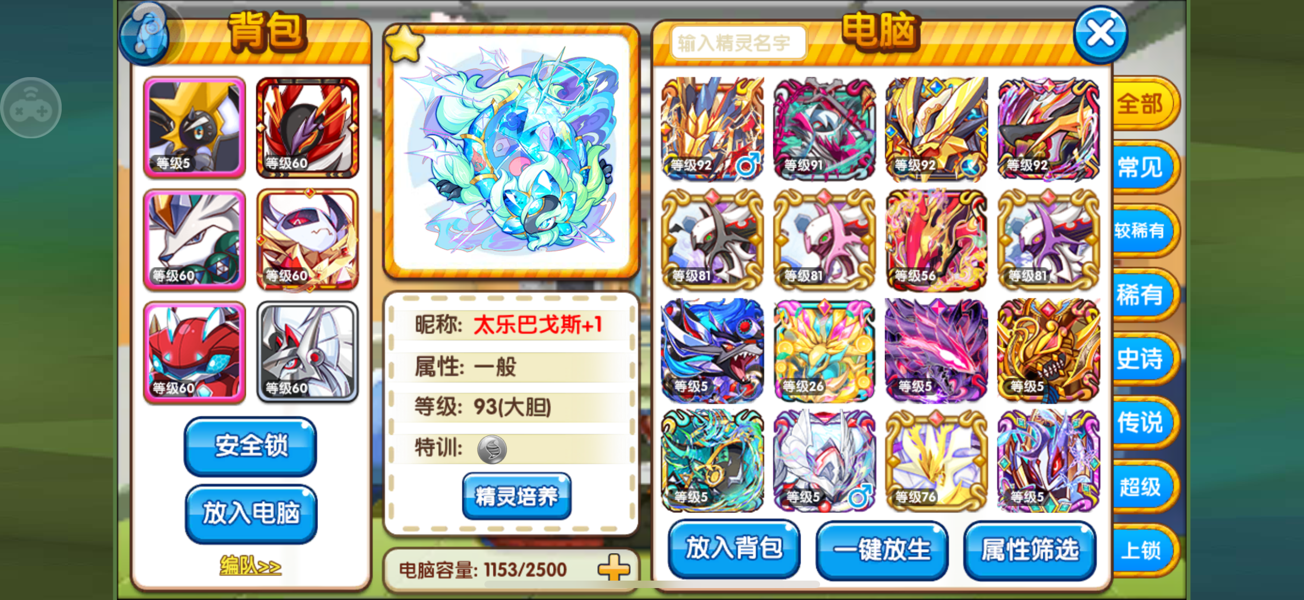 官方乐八双端(安卓苹果都能玩)26个9999,17万钻,6个大次元,穿刺新超梦,新专神创,新专斗龙,新专盾狗,新专电龙等所见基本满配。带金猪限定眼睛,捕兽夹,3穿刺3团结,2遥控器,2钛金礼盒等。