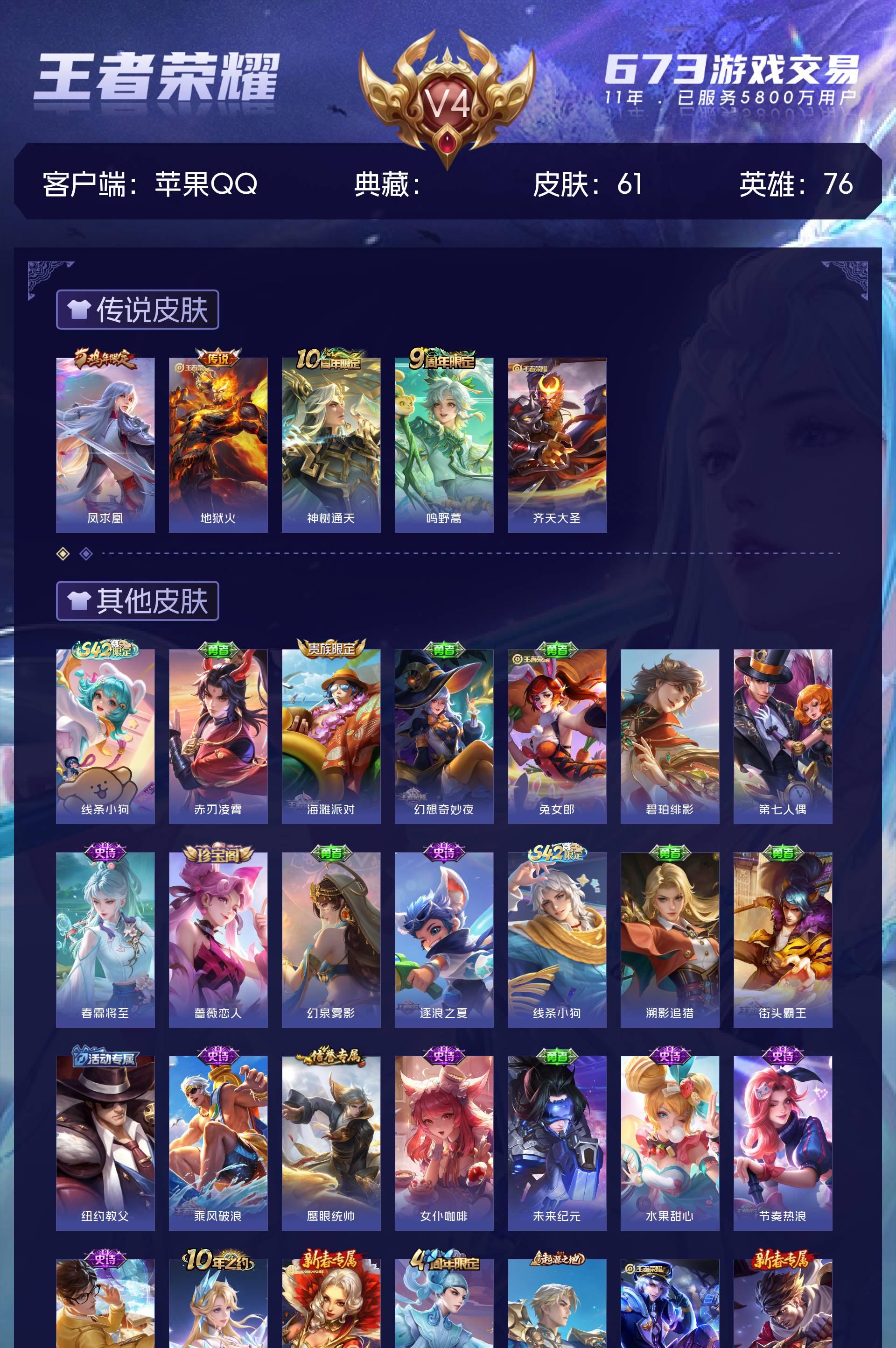 V4 皮肤61 英雄76 永恒钻石 传说5 其他皮肤62