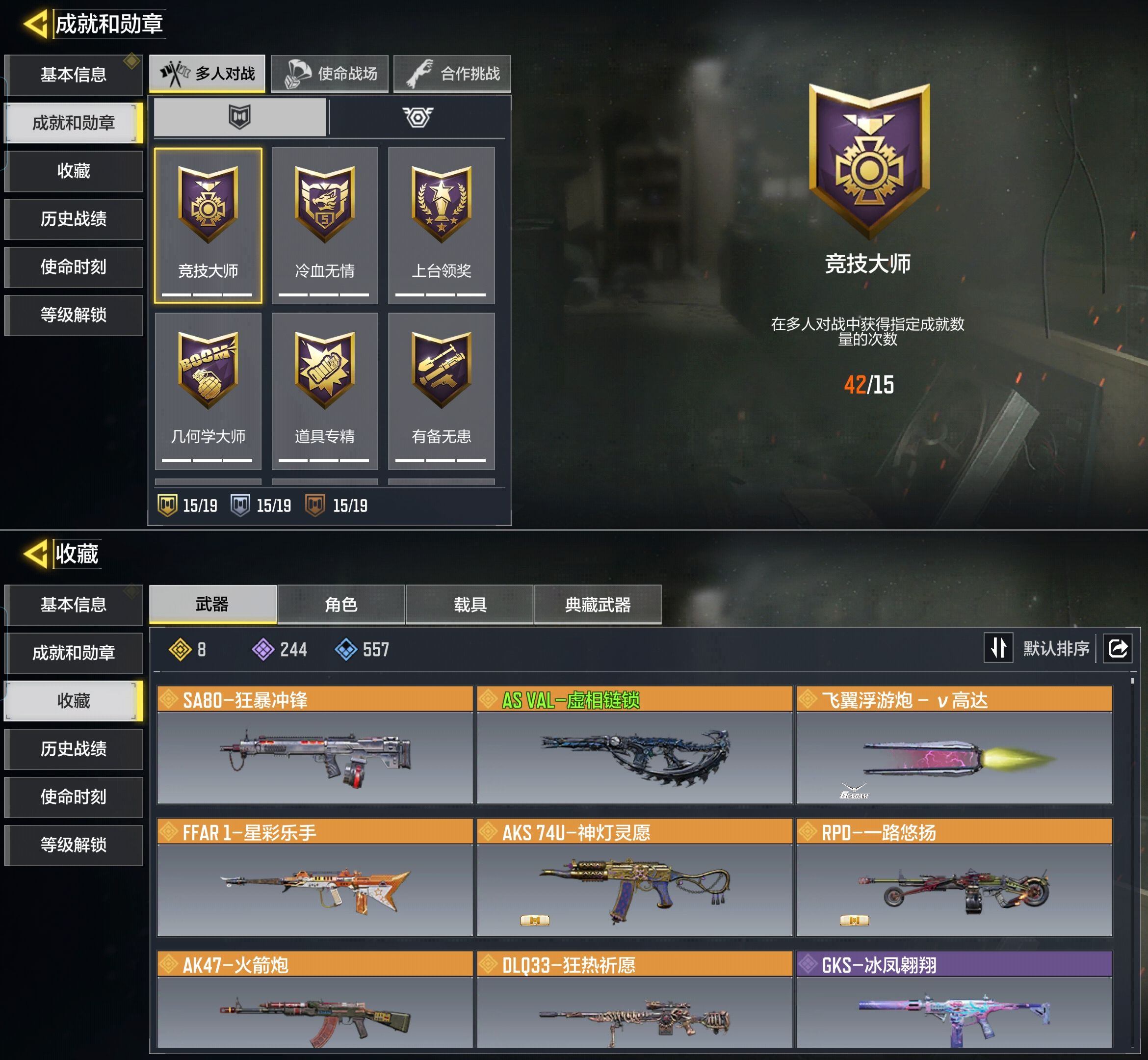 MHZ2650【传说8 虚相链锁】安卓Q-等级314-史诗枪械244-【传说】 FFAR1-星彩乐手 AKS74U-神灯灵愿 飞翼浮游炮-v高达 RPD-一路悠扬 SA80-狂暴冲锋 DLQ33-狂热祈愿 AK47-火箭炮 ASVAL-虚相链锁