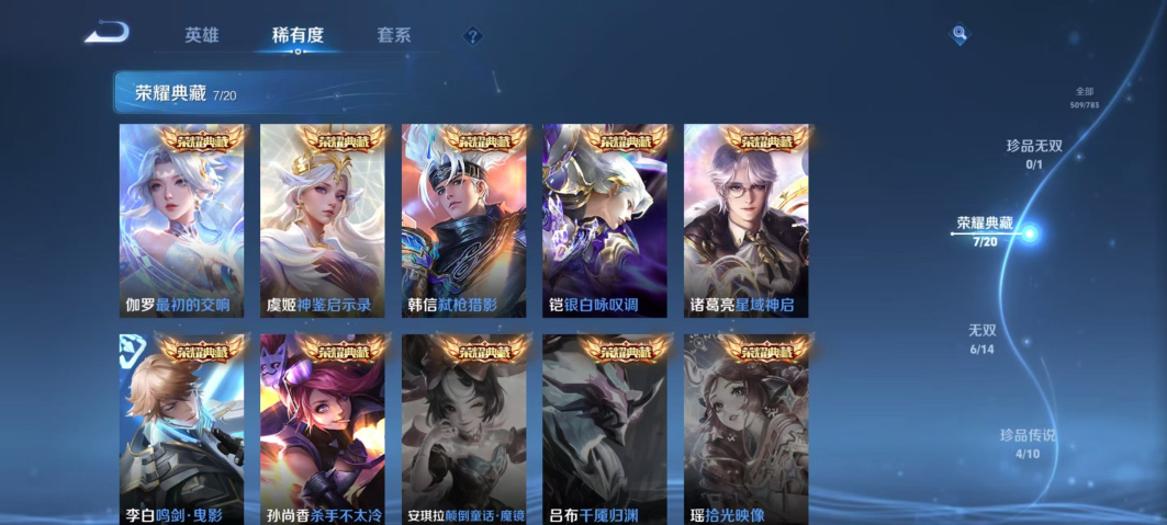 【V10 509皮肤7水晶6无双7星元4珍品68传说可秒换