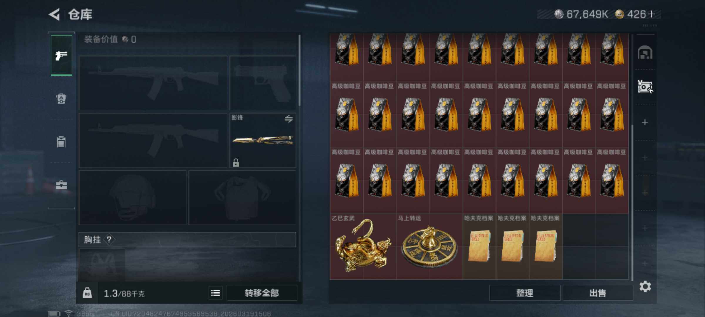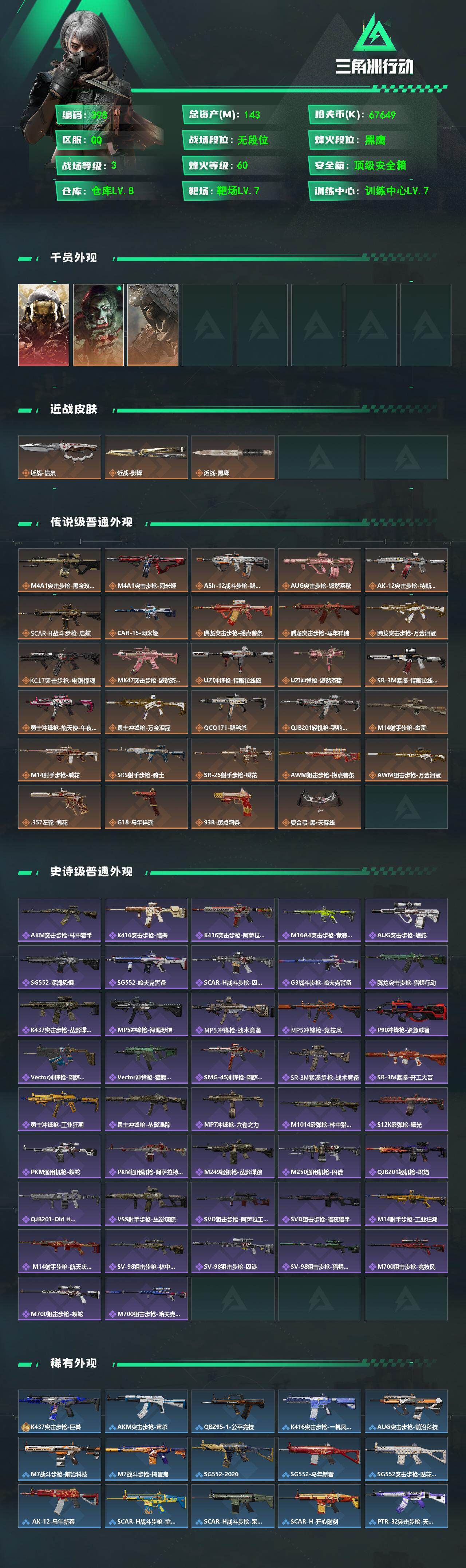 143m总资产-67649k哈夫币-60烽火等级-黑鹰-3战场等级-无军衔ws0132