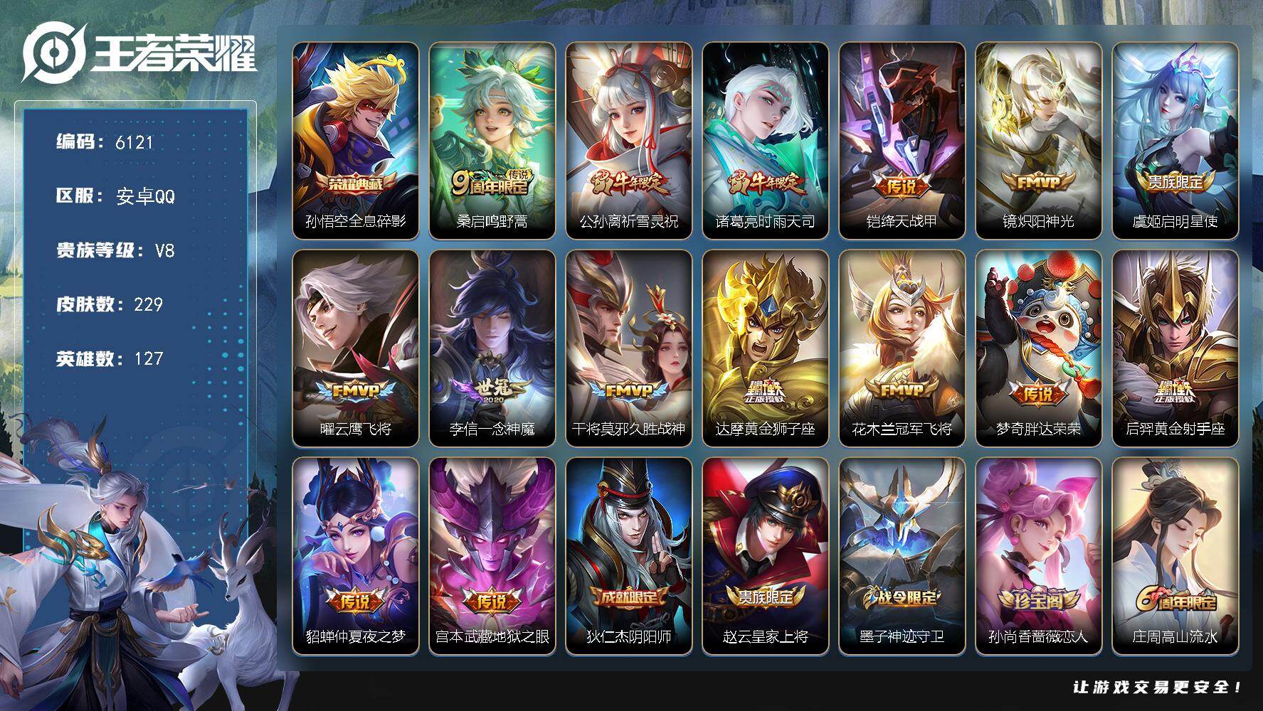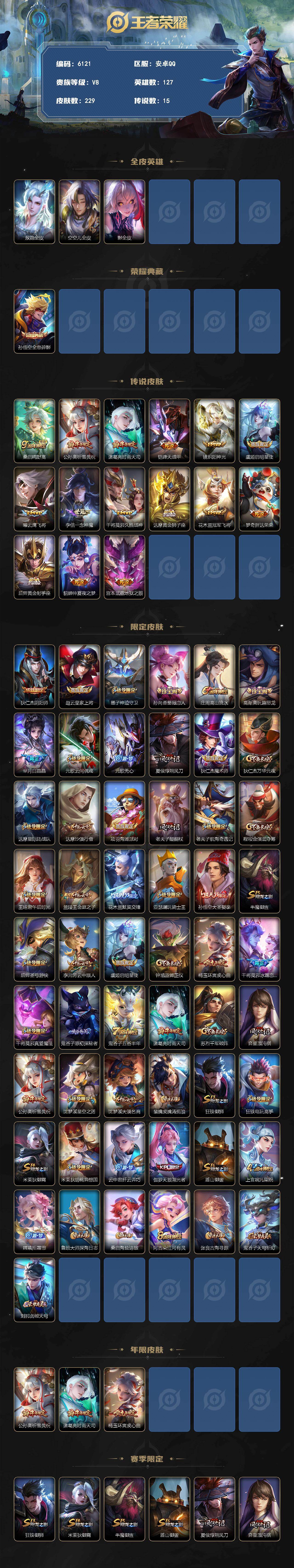 可二次 贵族8-贵族积分75460-229皮-1典藏-15传说-4全皮英雄-1改名卡 安卓手Q270区229皮1典藏15传说0无双V8