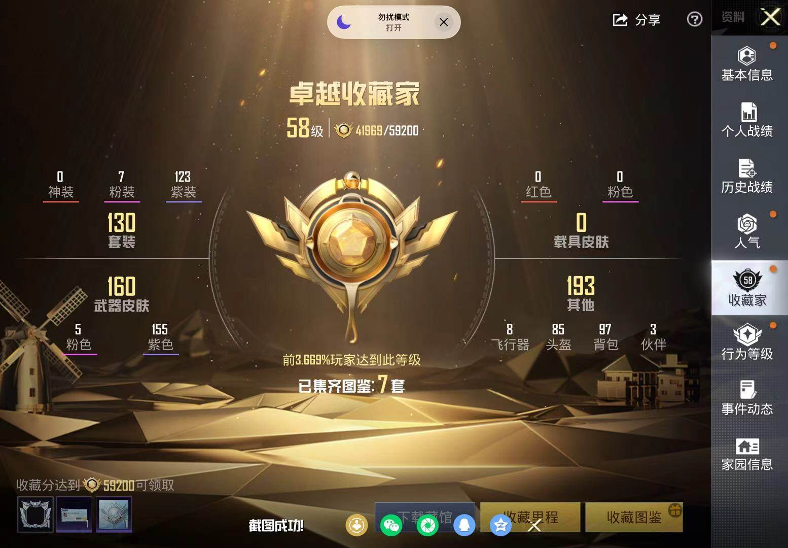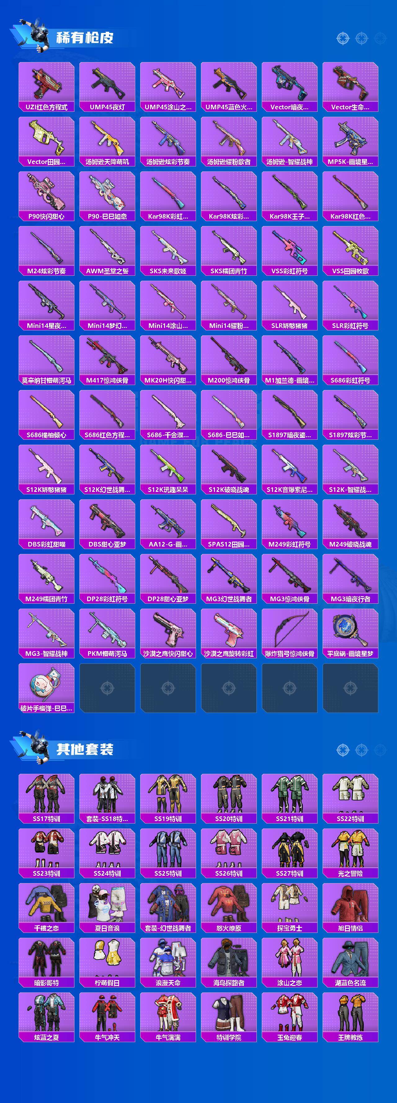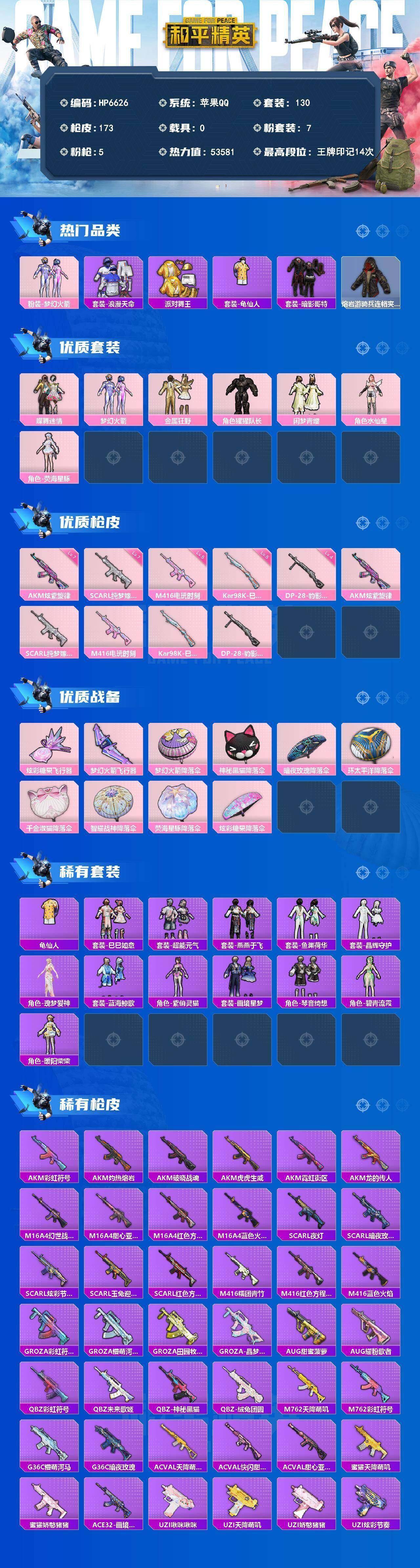 (7粉套5粉枪)地铁马上满天赋/派对舞王/暗影哥特/蝶舞迷情/梦幻火箭/金属狂野/猩猩队长/闲梦青缨/水仙星/荧海星豚/AKM炫紫旋律七级/SCARL纯梦嫁纱七级/M416电玩时刻五级/Kar98K巳巳如意五级/DP28豹影疾电四级/没战神框/HP6626-2粉色飞行器-53581热力值-14王牌印记-130套装-173枪皮