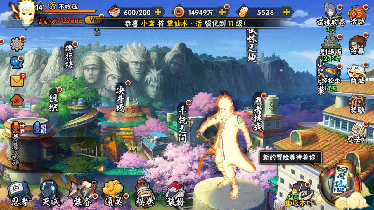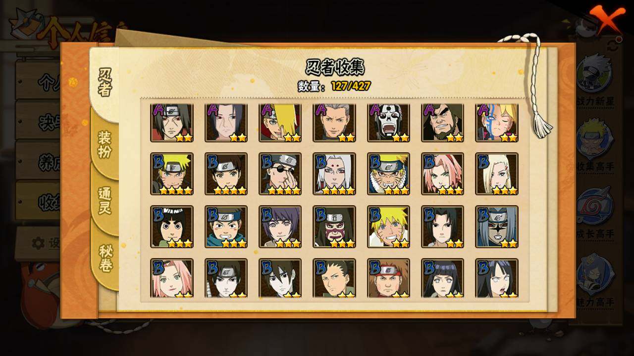 【S级忍者】:宇智波斑「秽土转生·解」(3星),艾「忍界大战」(3星),宇智波鼬「须佐能乎」(3星),自来也「舞之豪杰」(3星),自来也「传说中的三忍」(3星),波风水门(3星),漩涡鸣人「九喇嘛连结」(3星),佩恩「天道」(3星),漩涡鸣人「暴怒·第六尾」(3星),波风水门「九喇嘛连结」(3星),漩涡鸣人·宇智波佐助(3星)