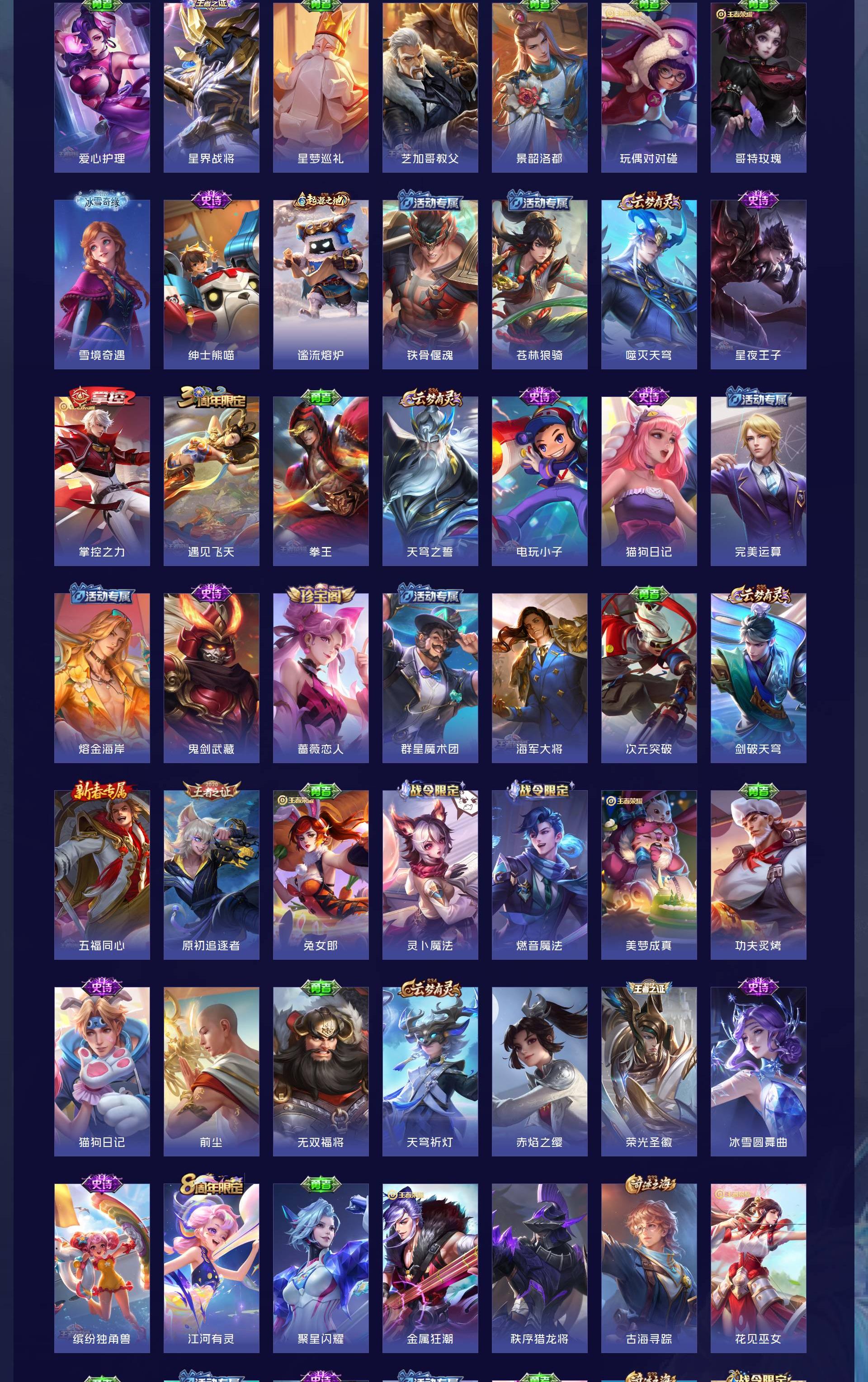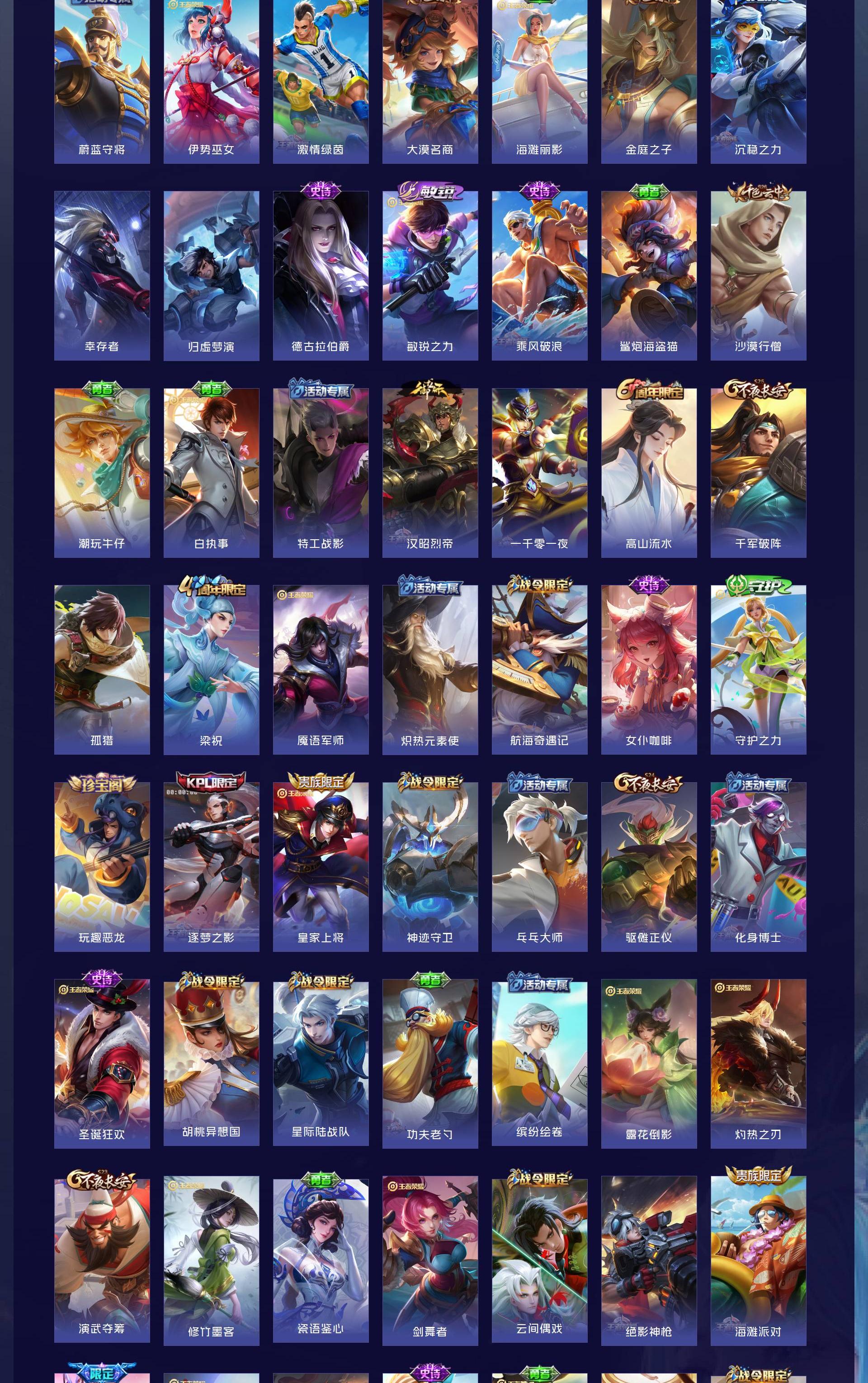 V7 皮肤243 英雄127 至尊星耀 荣耀典藏2 珍品传说1 传说9 其他皮肤238