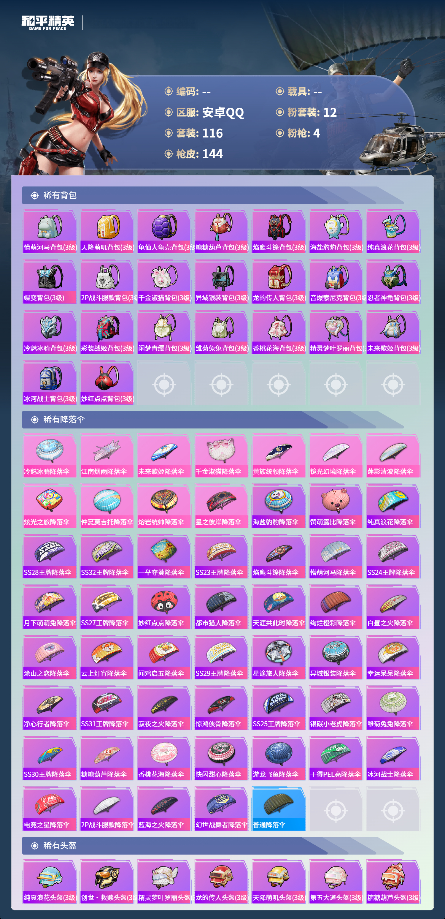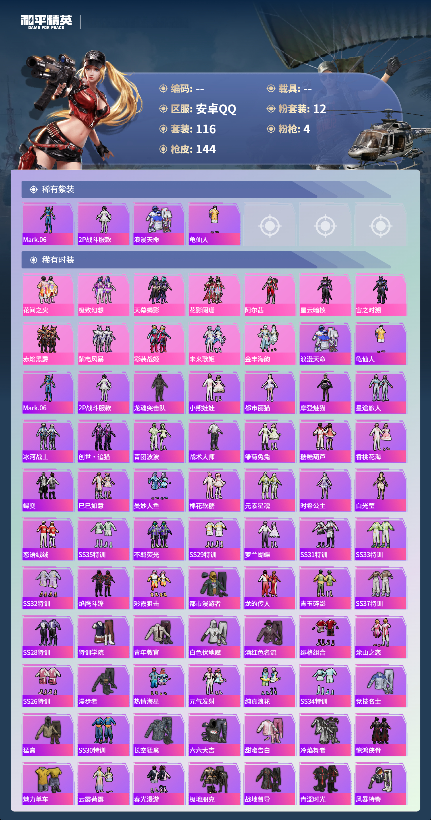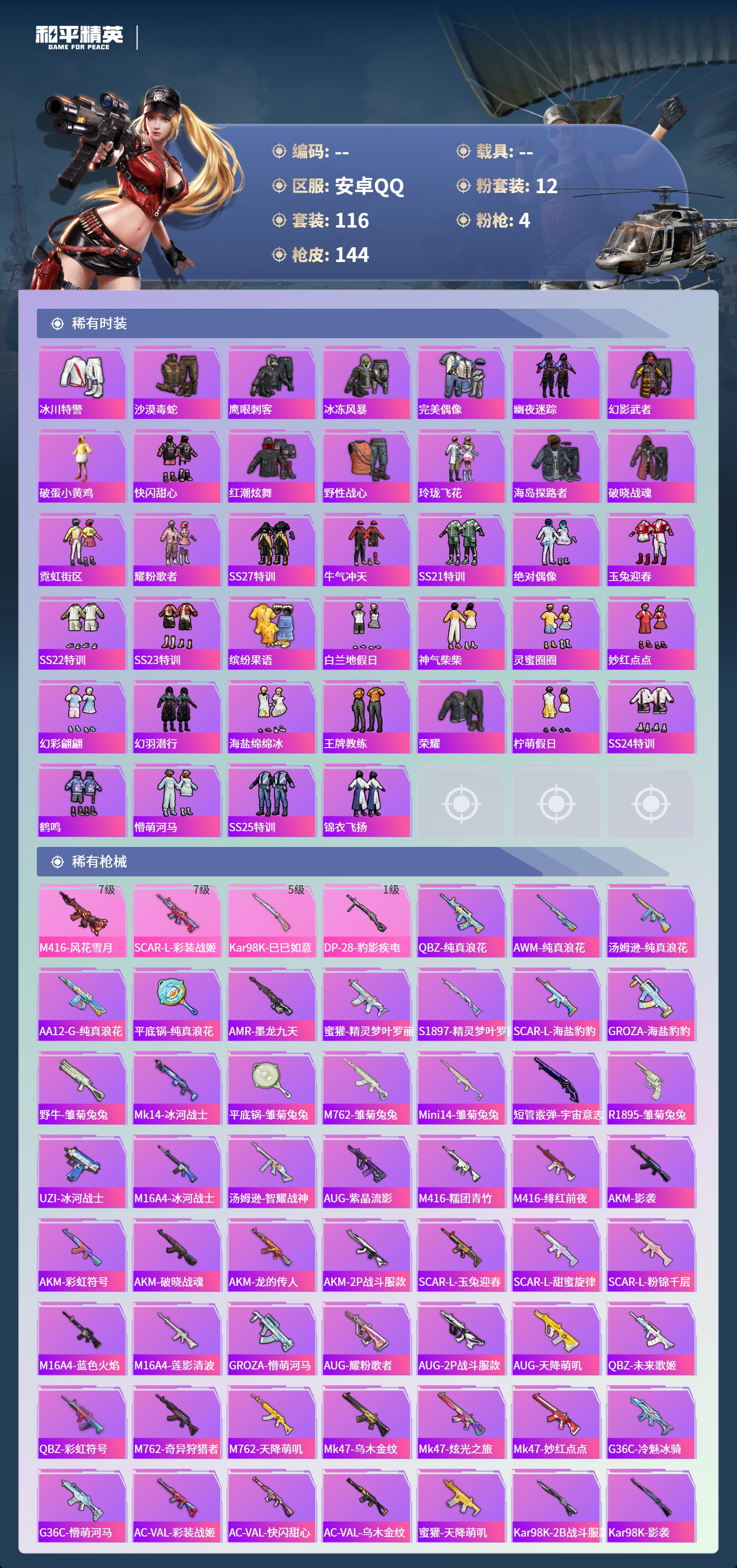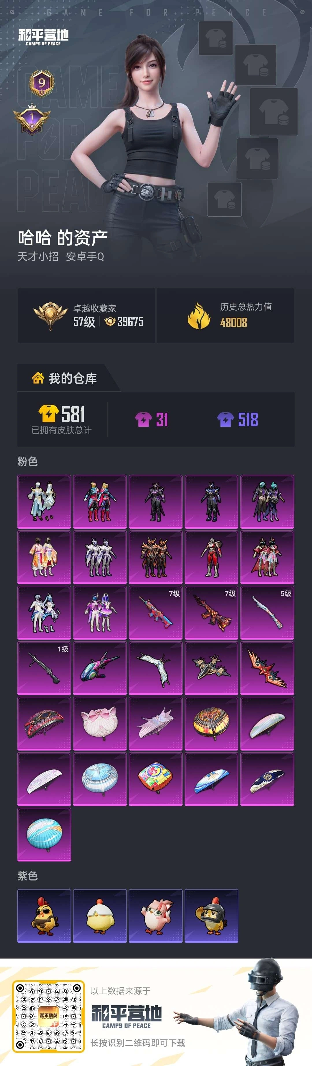 hs65346安卓手Q-9王牌印记-12粉装-4特效枪-48008热力值-116套装-144枪皮-1卓越印记