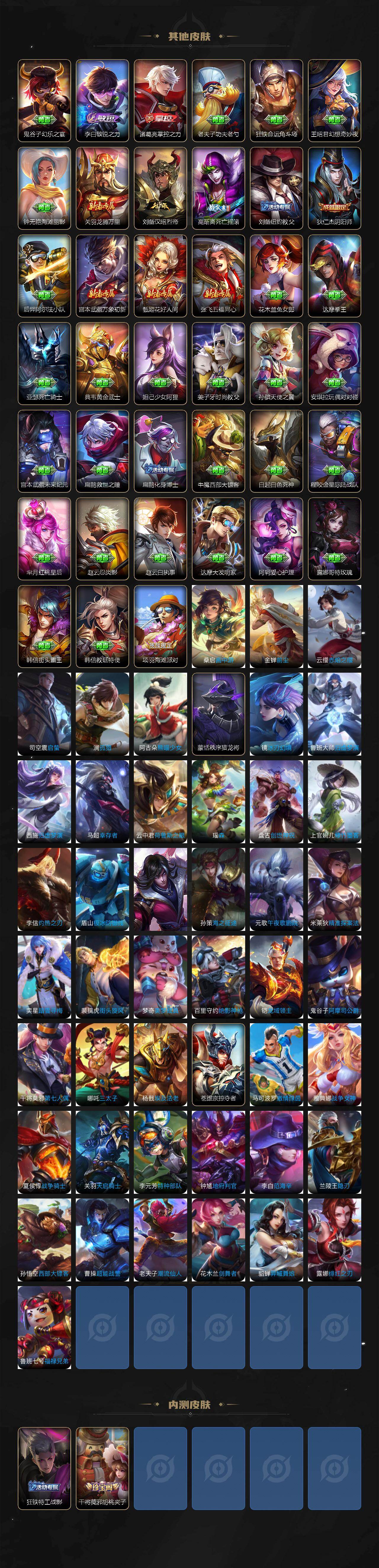 【英雄全皮】:孙权全皮,百里守约全皮,敖隐全皮,司空震全皮,空空儿全皮