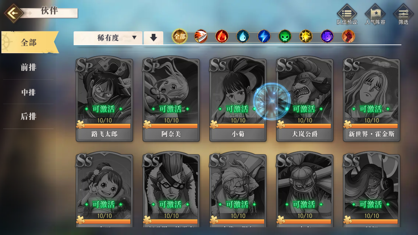 官方普通账号 未绑定 未充值 未用礼包 没看错7UR角色哦带最新金伙伴红发哦外带N多UR碎片哦随便觉醒 外带现成15SSS伙伴 NSP NSS角色 带自选多SSS伙伴 外带3千多各色朗姆酒 等各种资源