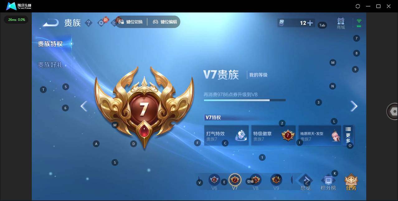 贵族等级: V7 英雄数: 127 皮肤数: 278 荣耀水晶: 全息碎影,弑