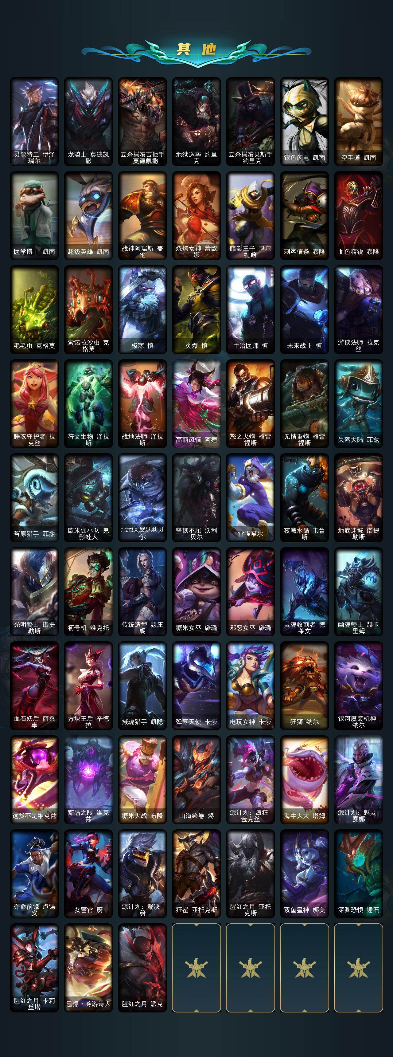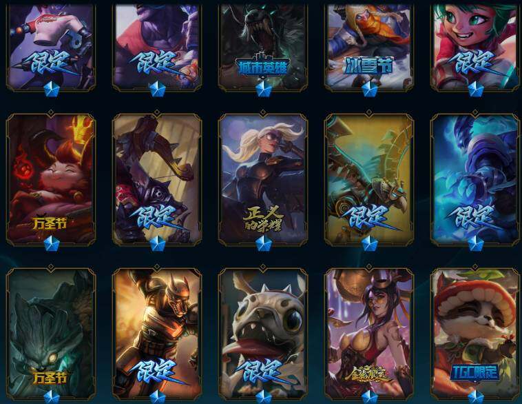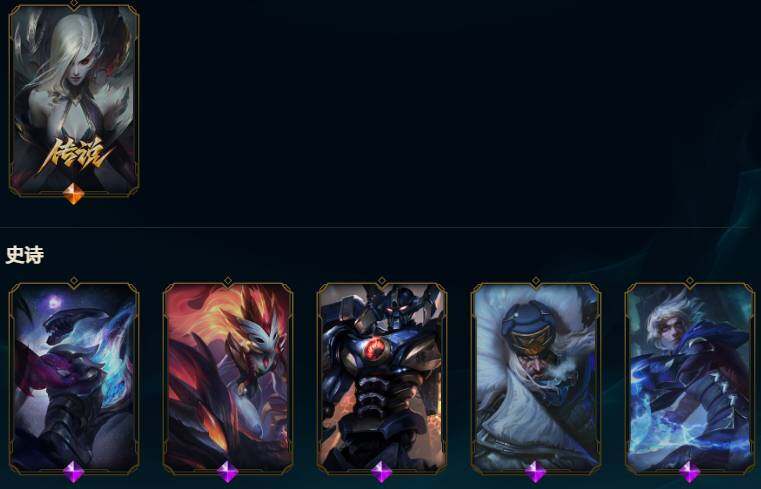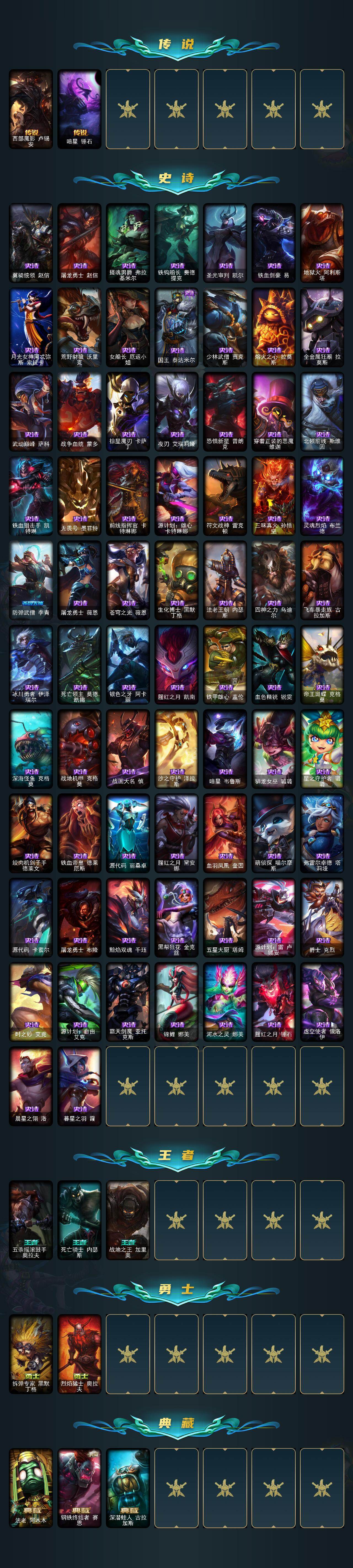 170英雄/326皮肤/1终极/6神话/31限定/2臻彩/36炫彩/37传说/72史诗/未定级/