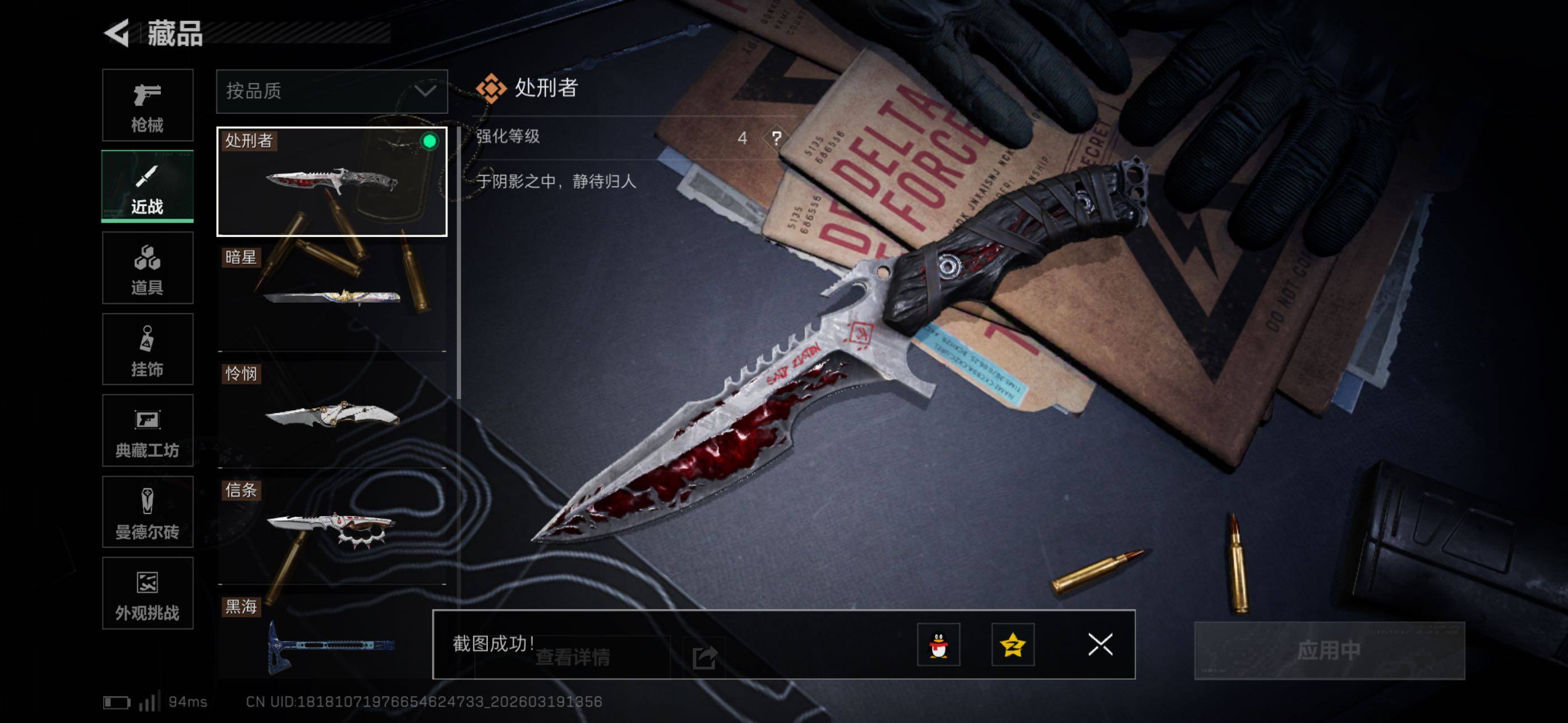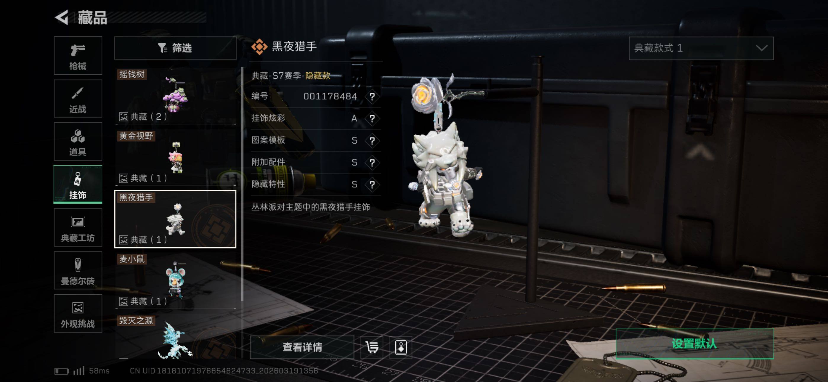 {特价出售}等级:60 总资产:623.6M 纯币 103M 隐藏挂饰:黑夜猎手,毁灭之源 红皮:蚀金玫瑰,凌霄戍卫,水墨云图 刀皮:暗星,信条,怜悯,黑海 砖皮: m7棱镜(优品a) 特勤处:仓库9,训练7,靶场7 部门33433