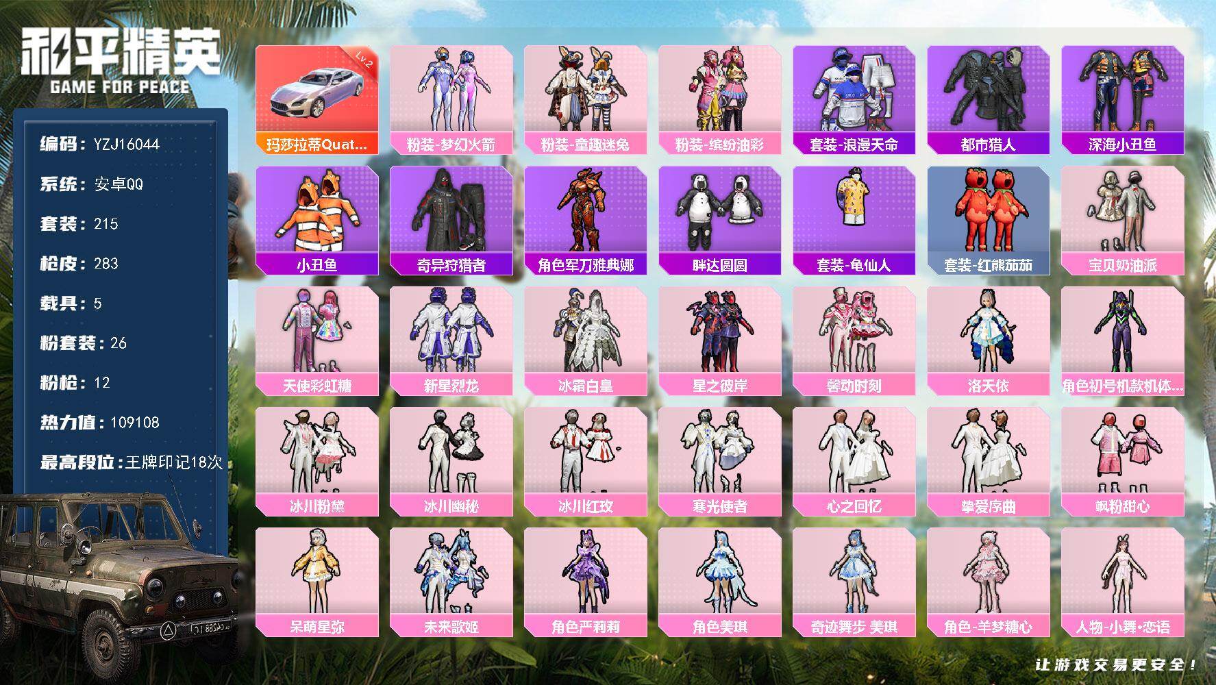 2515516_实名可改-安卓Q-3稀有4载具26粉装12特效枪26热门【极品精氪公主素材号多粉多特高印记优质主页面板5款热门不重复车型2级幻星粉满级M4至情至圣满级P90仙履奇缘火箭少女紫螳螂小舞恋语猪妹洛天依童趣迷兔冰川三姐妹甜心两姐妹呆萌羊梦糖心都市权威小番茄唐三胖达圆圆激萌罗小黑小丑鱼薰款战斗服零款战斗服双马尾蜘蛛侠狂沙天命粉熊背包童趣迷兔头盔1级飞天猪飞行器卡林大人-伙伴超萌熊本熊-伙伴