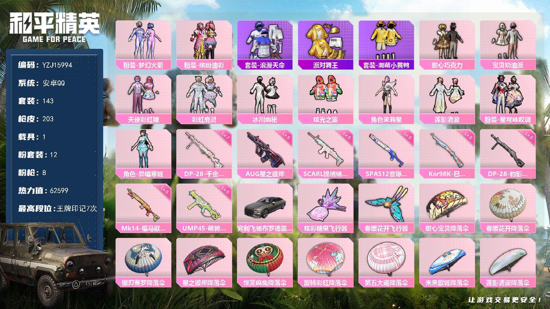 二五一五八六九_可二次-安卓Q-3稀有1载具12粉装8特效枪10热门【精品公
