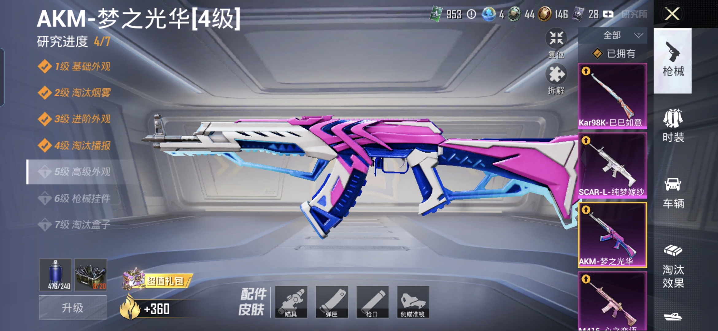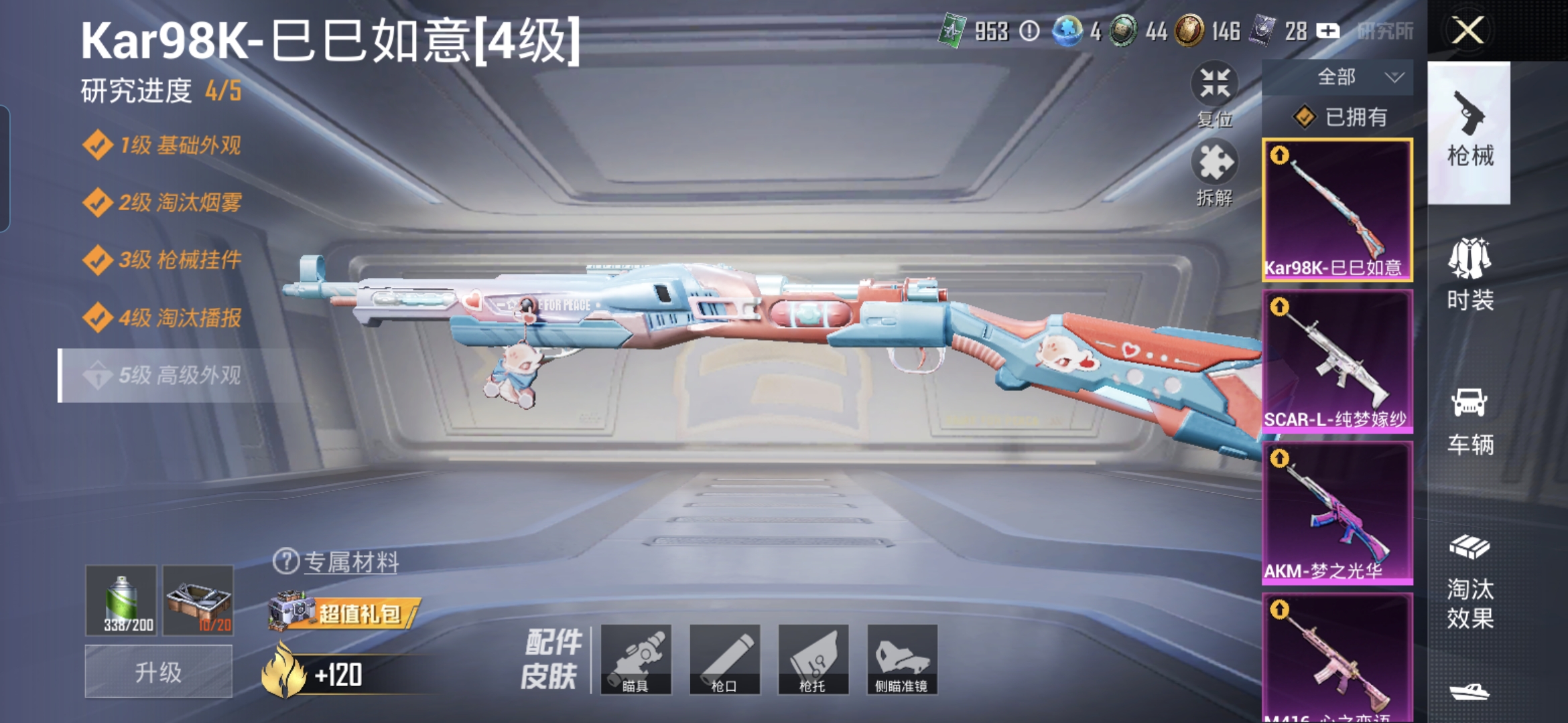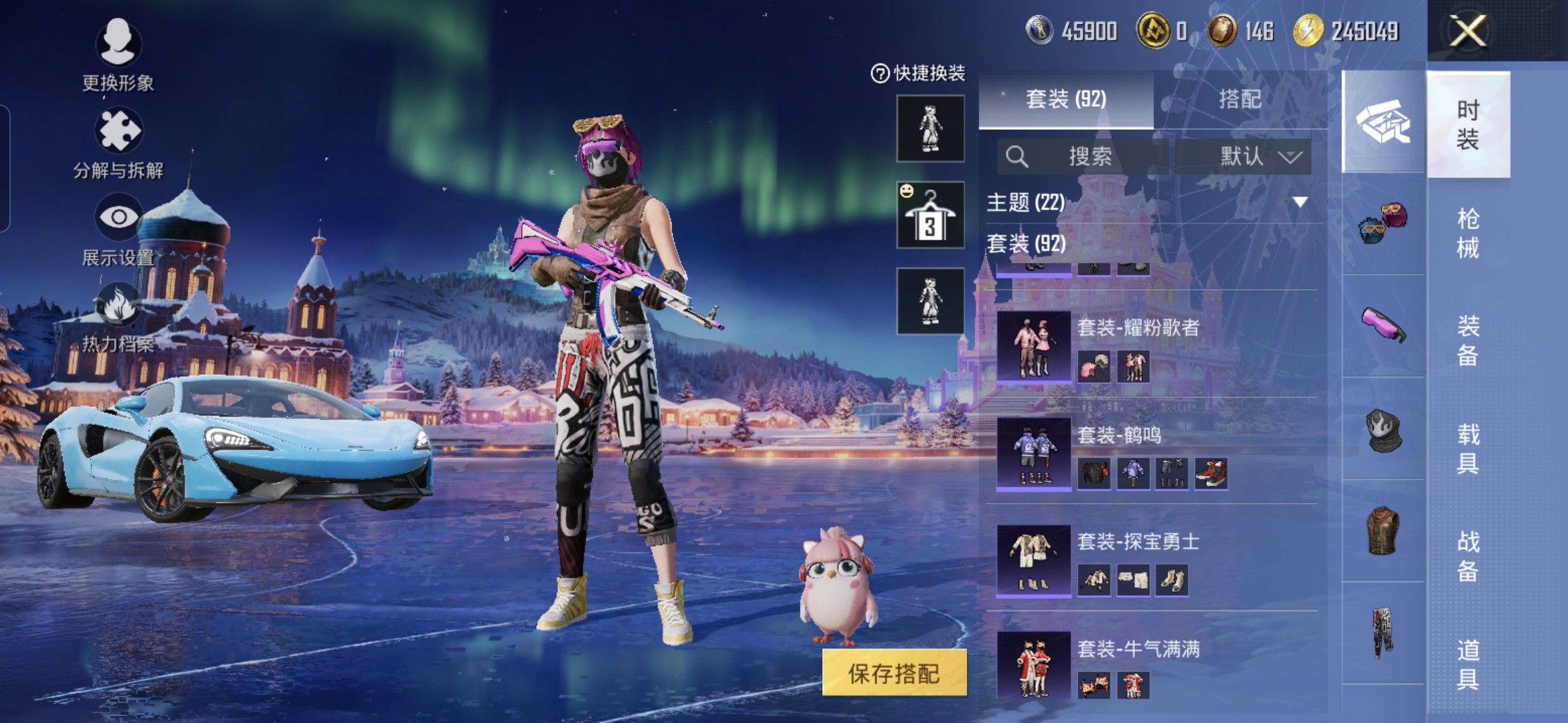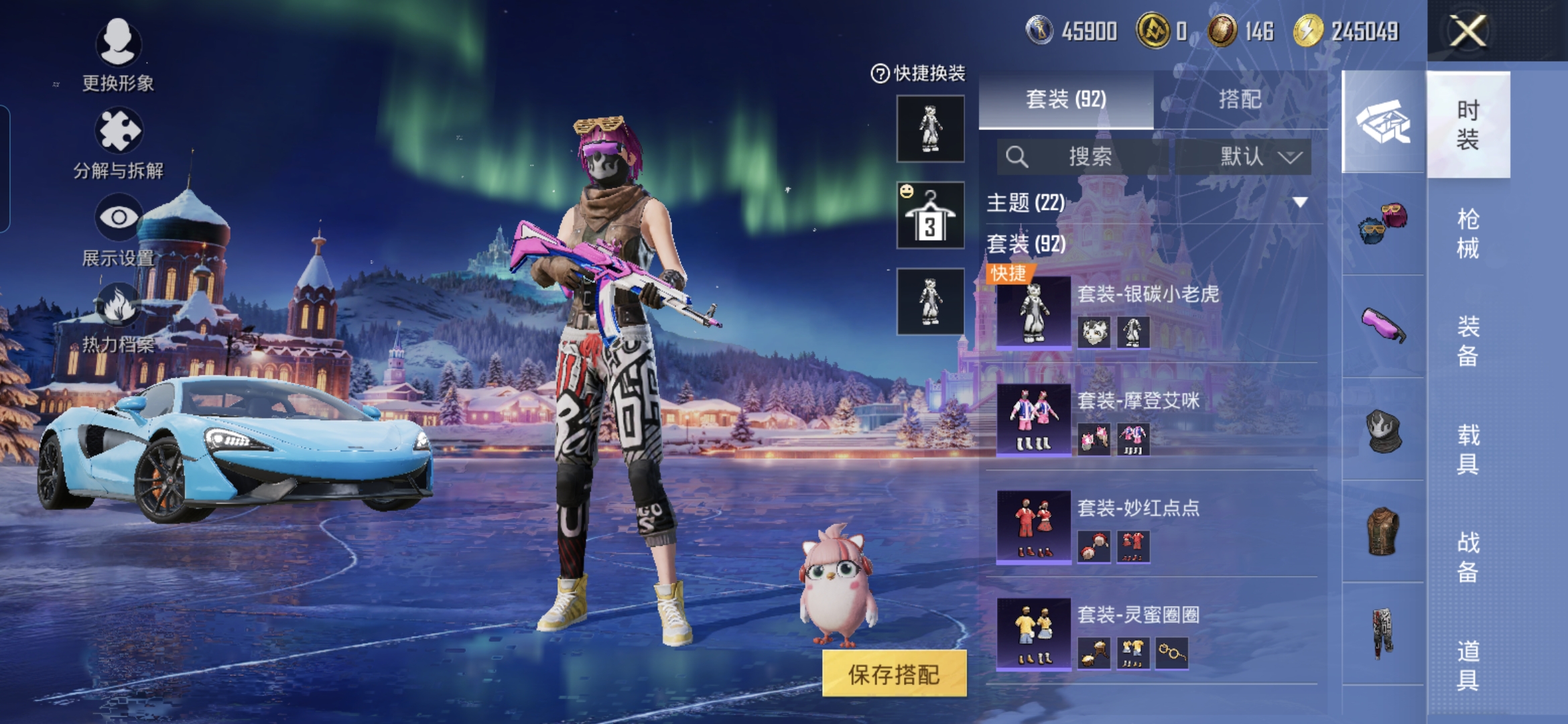 5载具3粉装4特效枪5热门92套装128枪皮 44070热力值 3印记 历史超级王牌2星