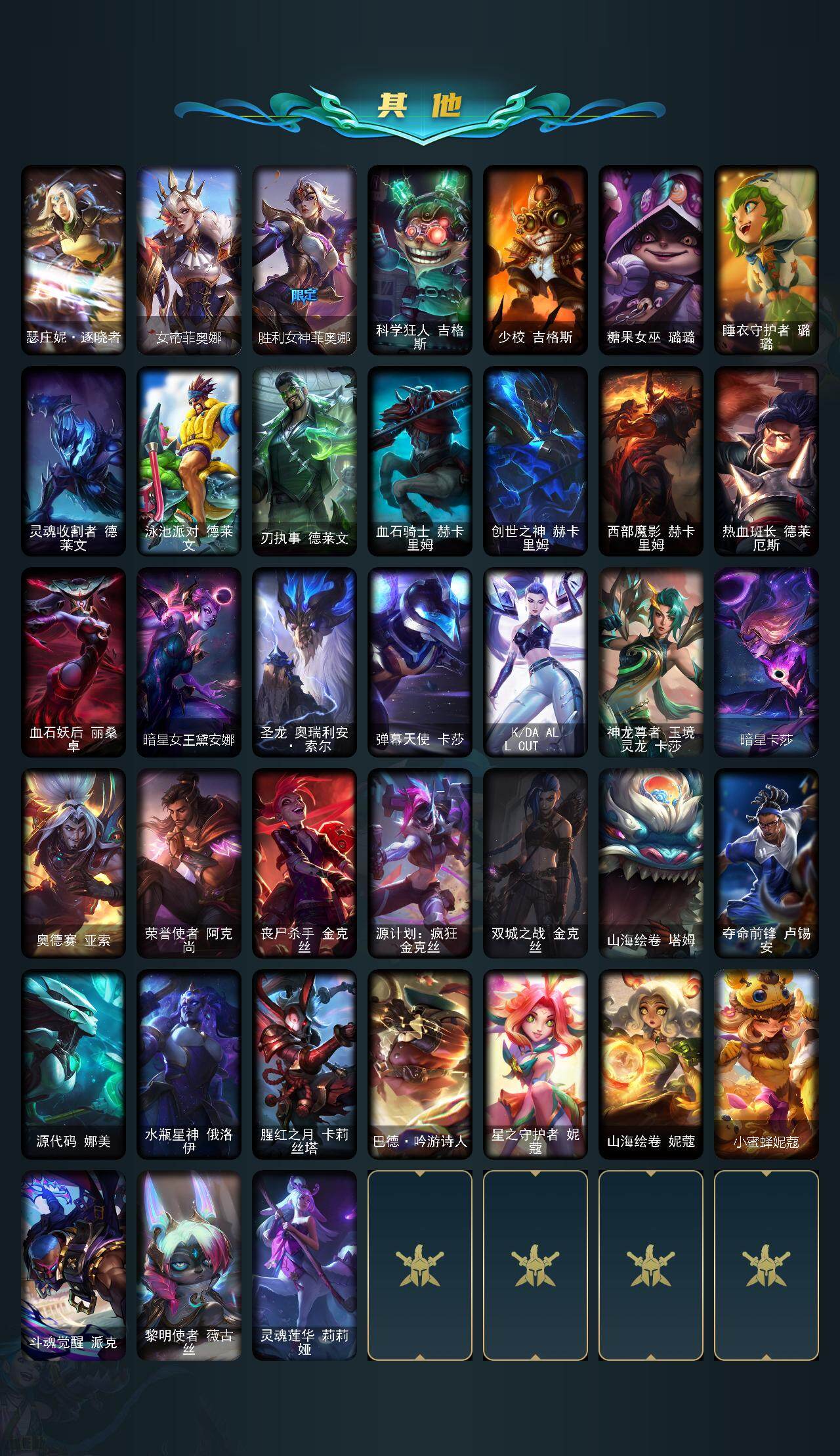 未定级段位-172英雄-405皮肤-202炫彩-2终极-12神话-59限定-34传说-89史诗