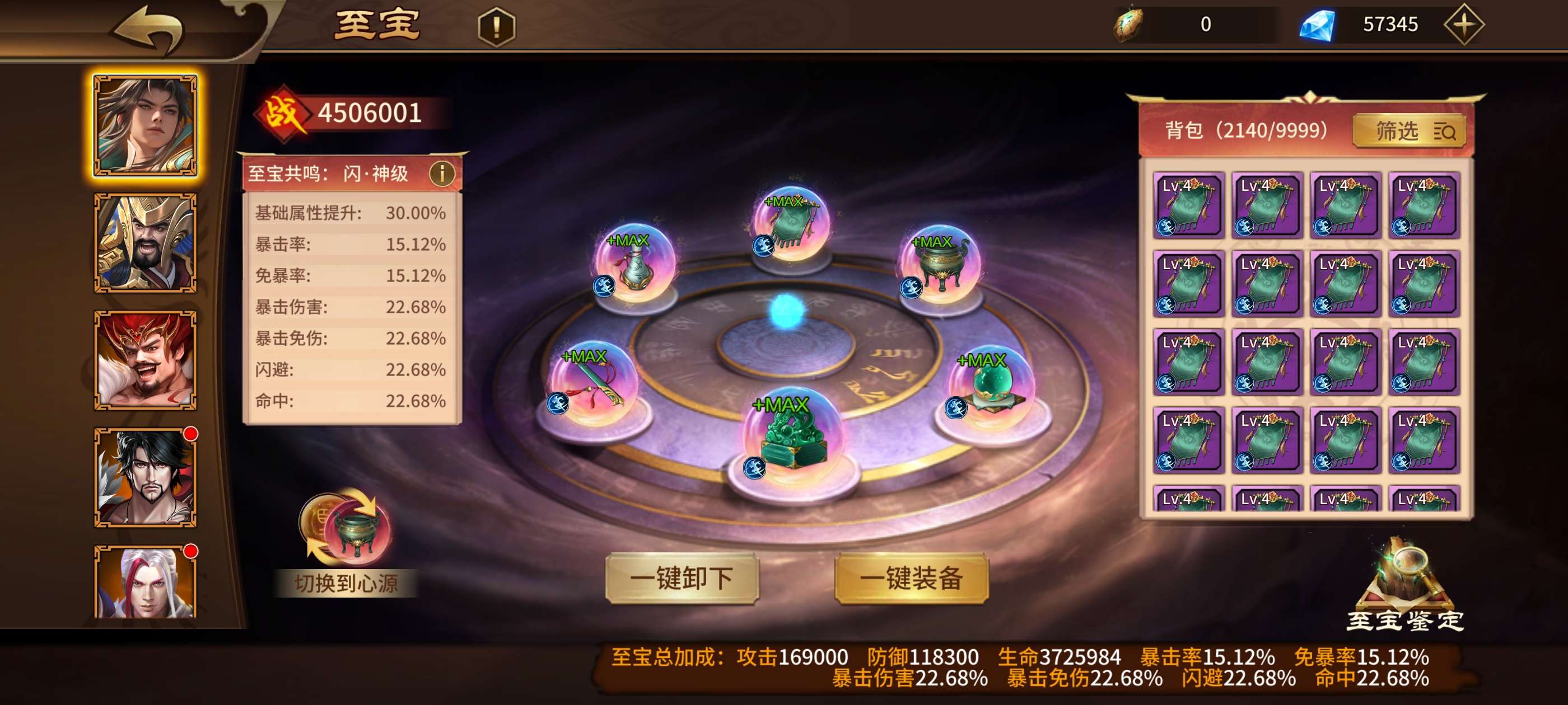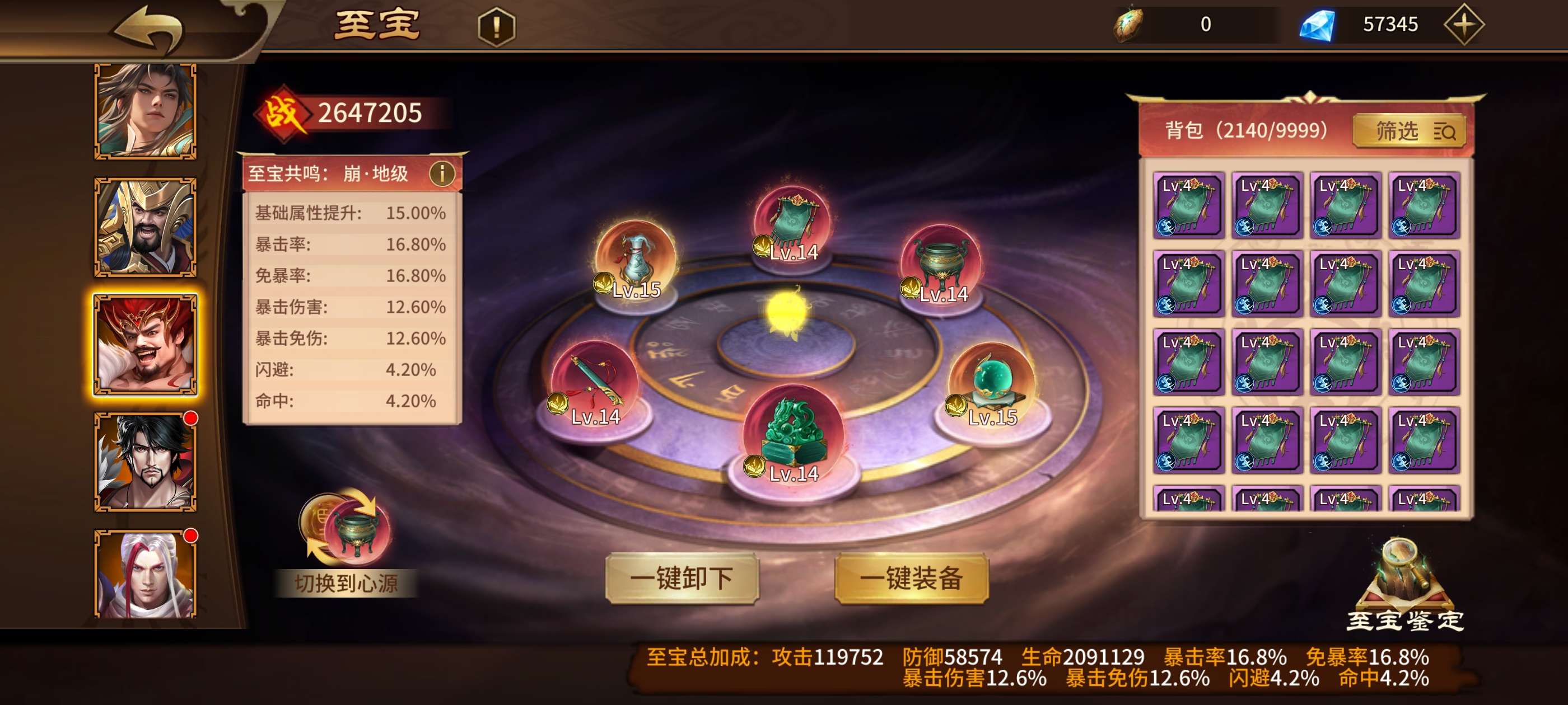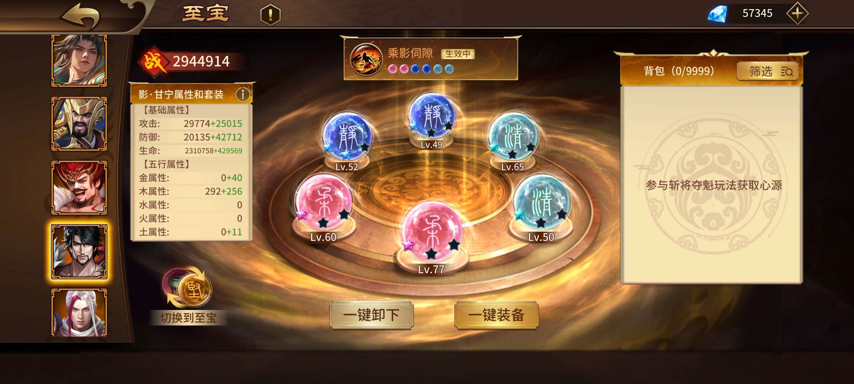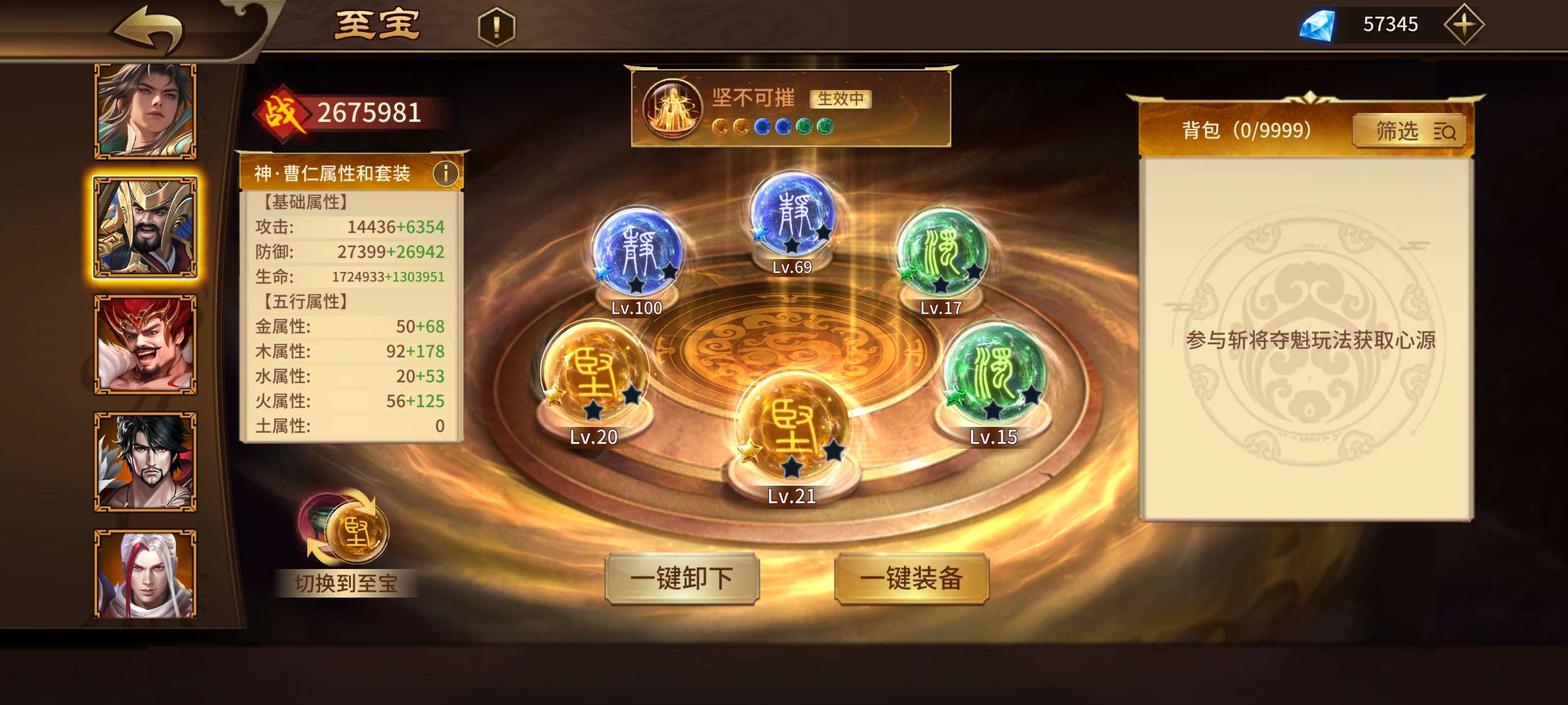 两套至宝 两套心源 四橙灵兽 张角巅峰 兵法橙满