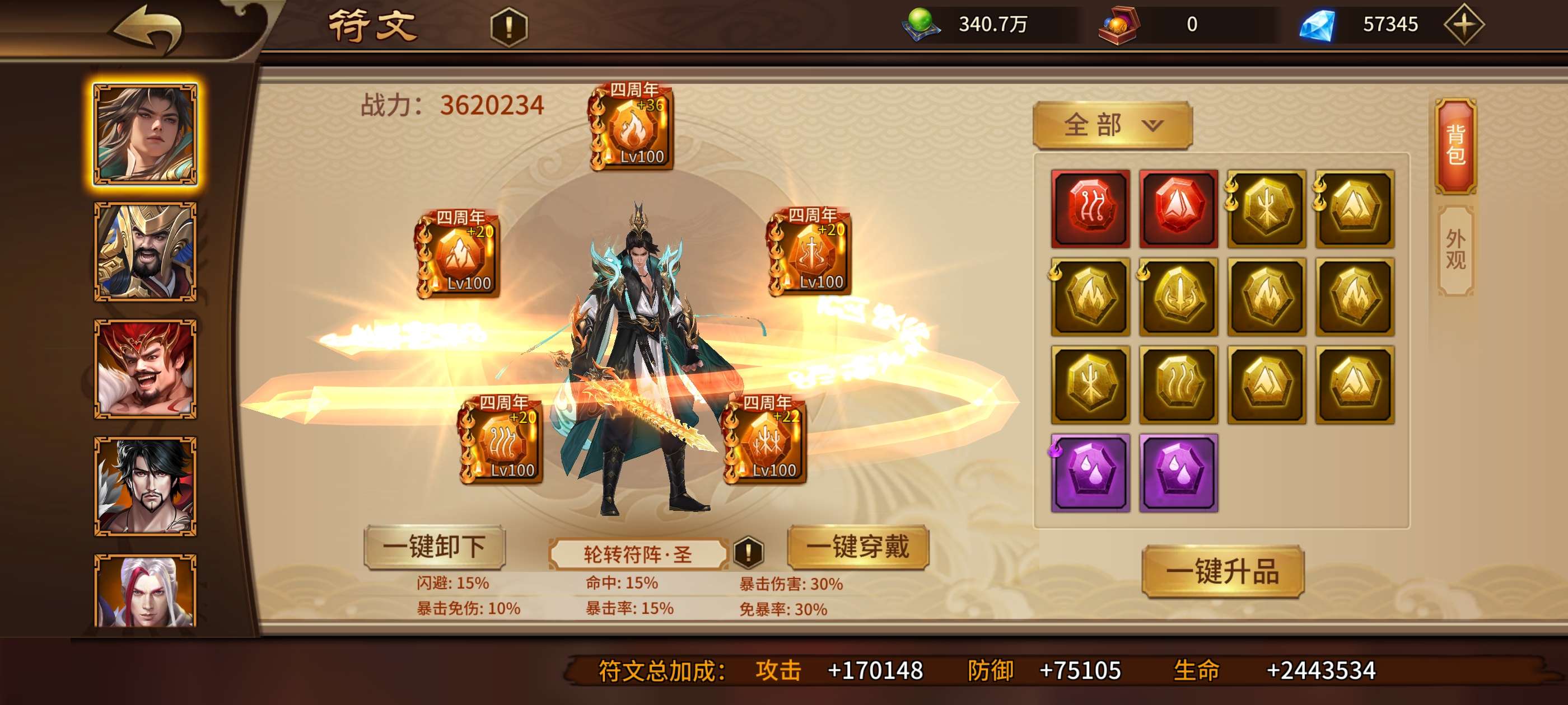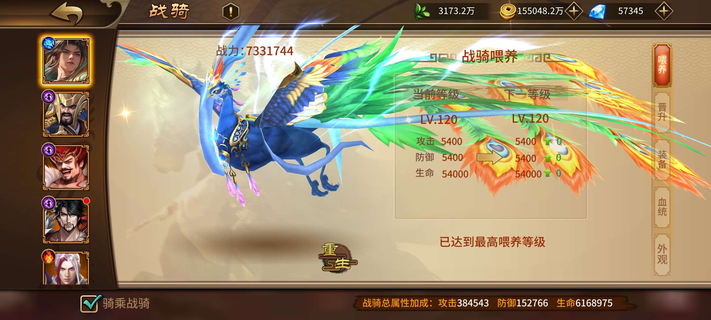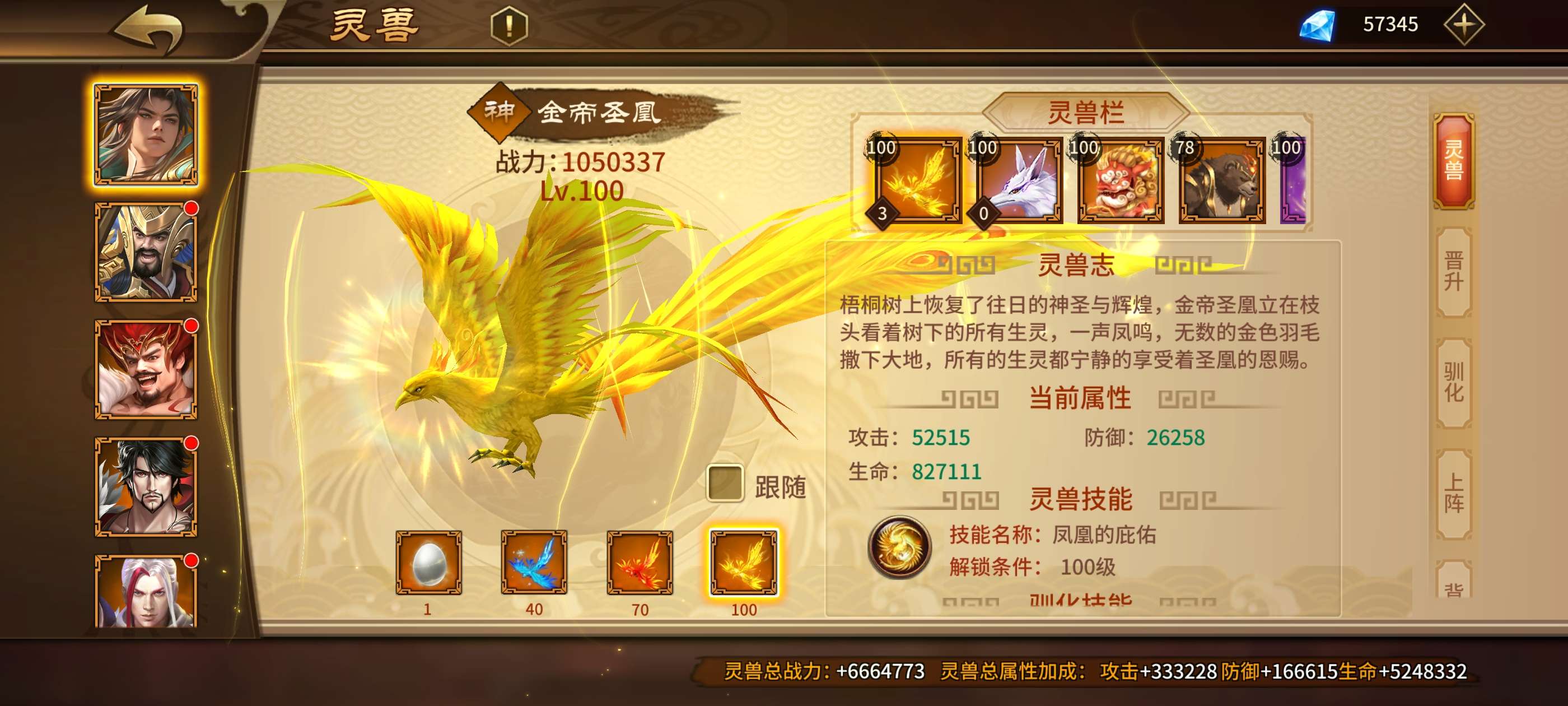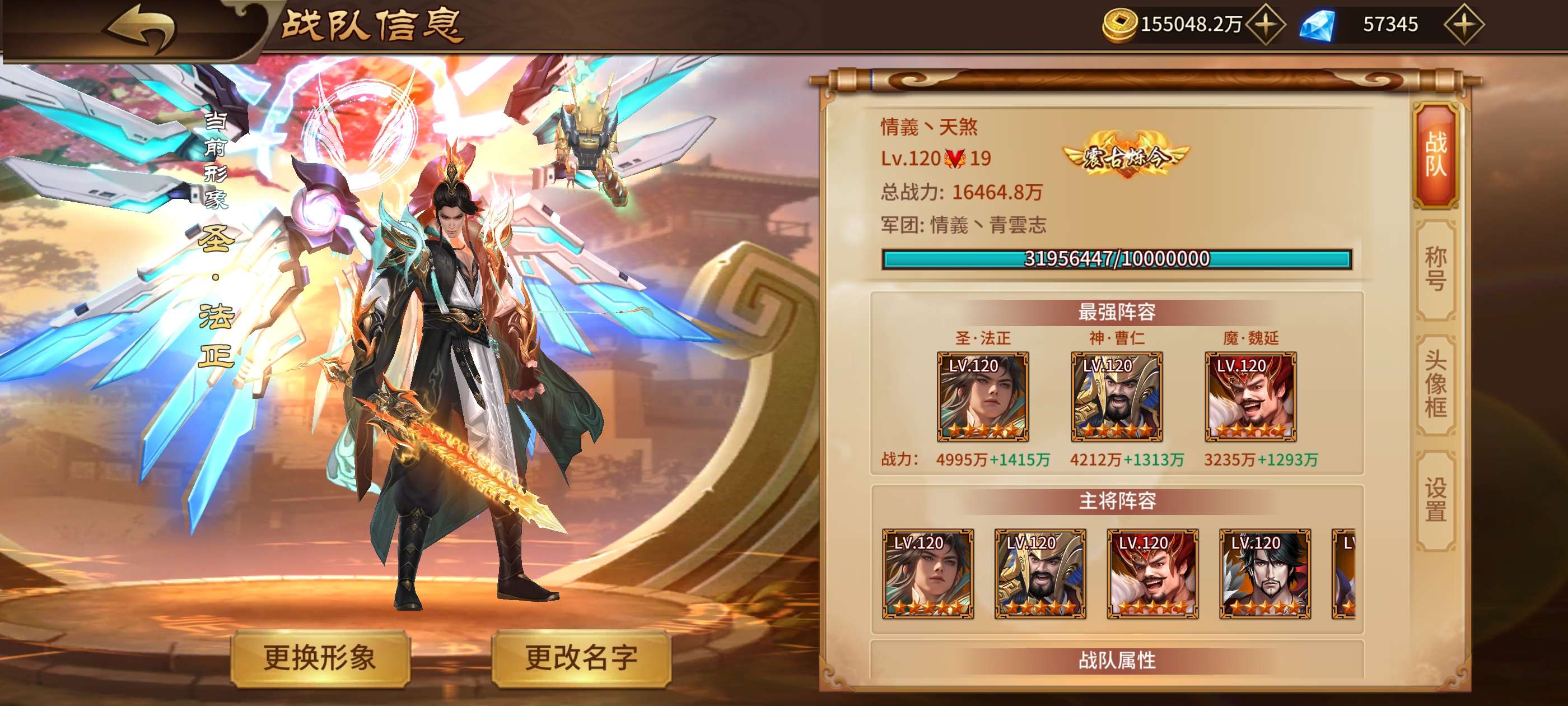 两套至宝 两套心源 四橙灵兽 张角巅峰 兵法橙满