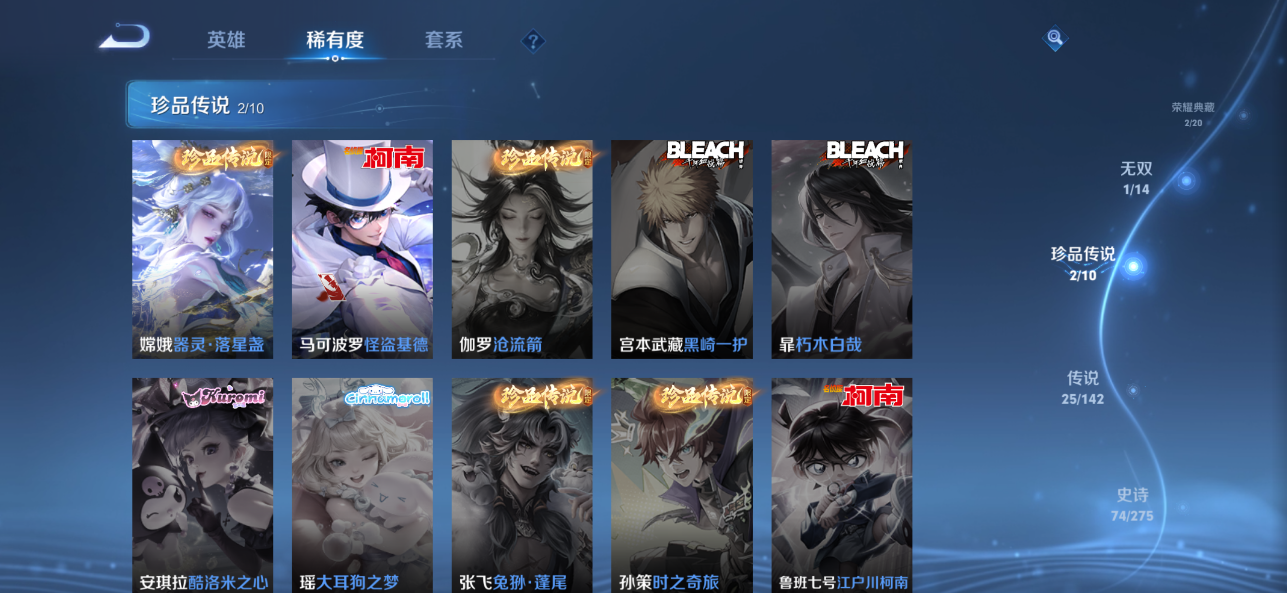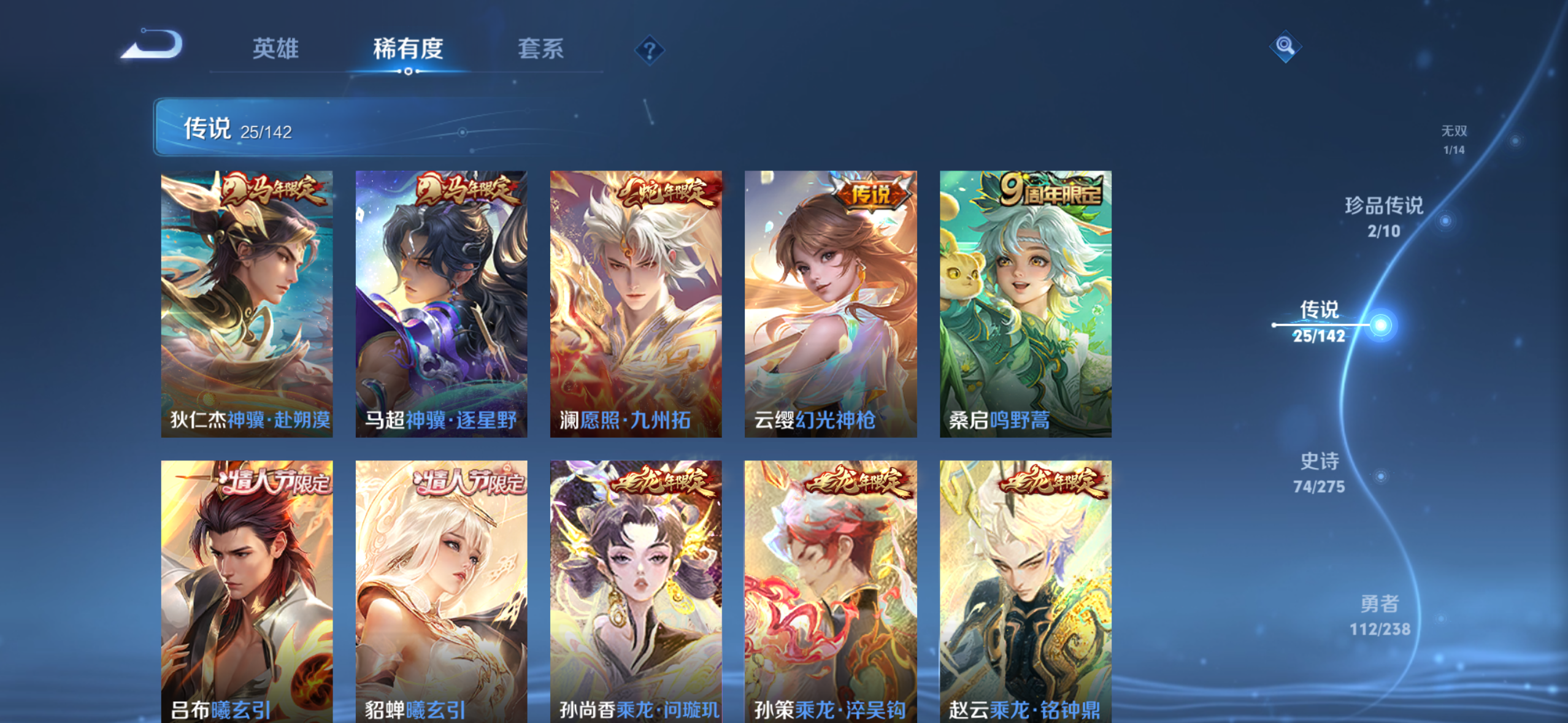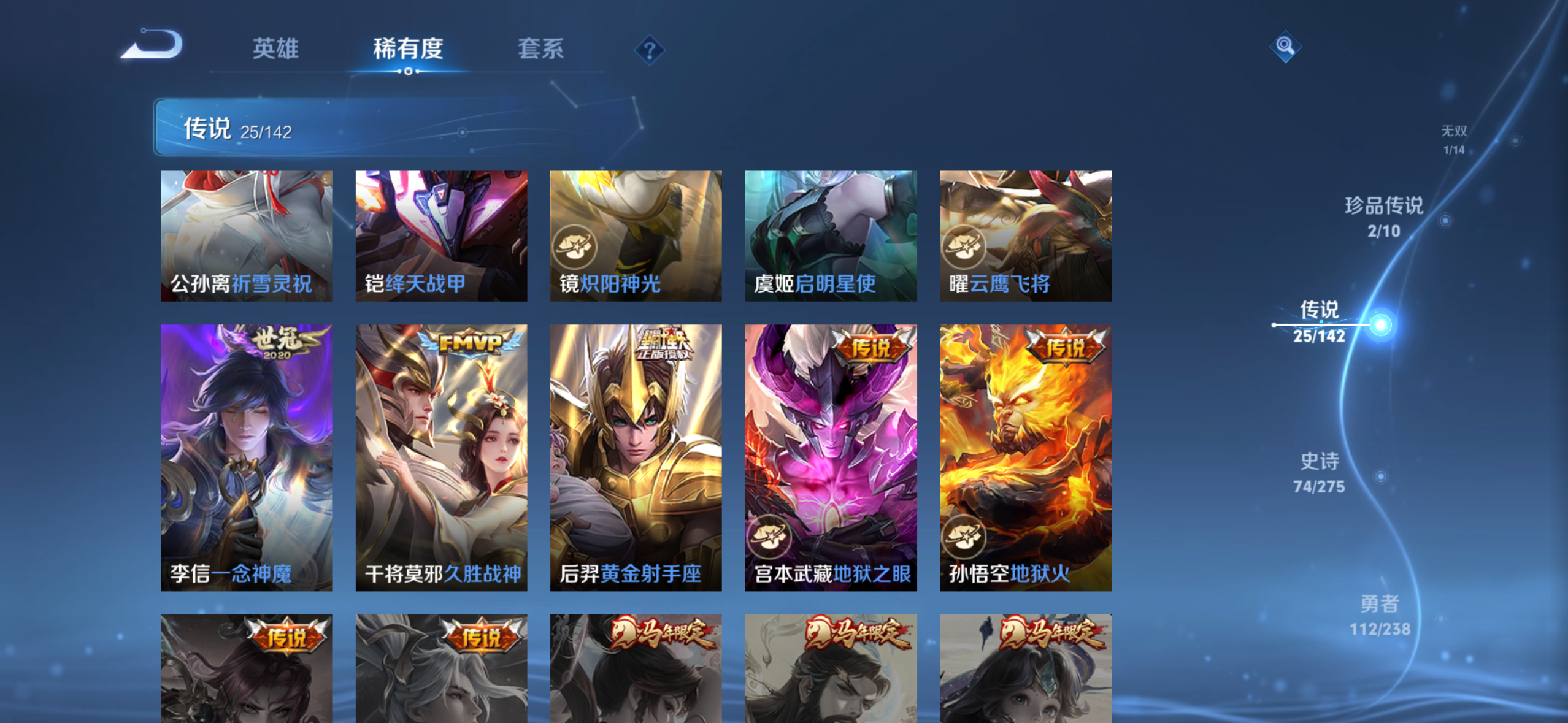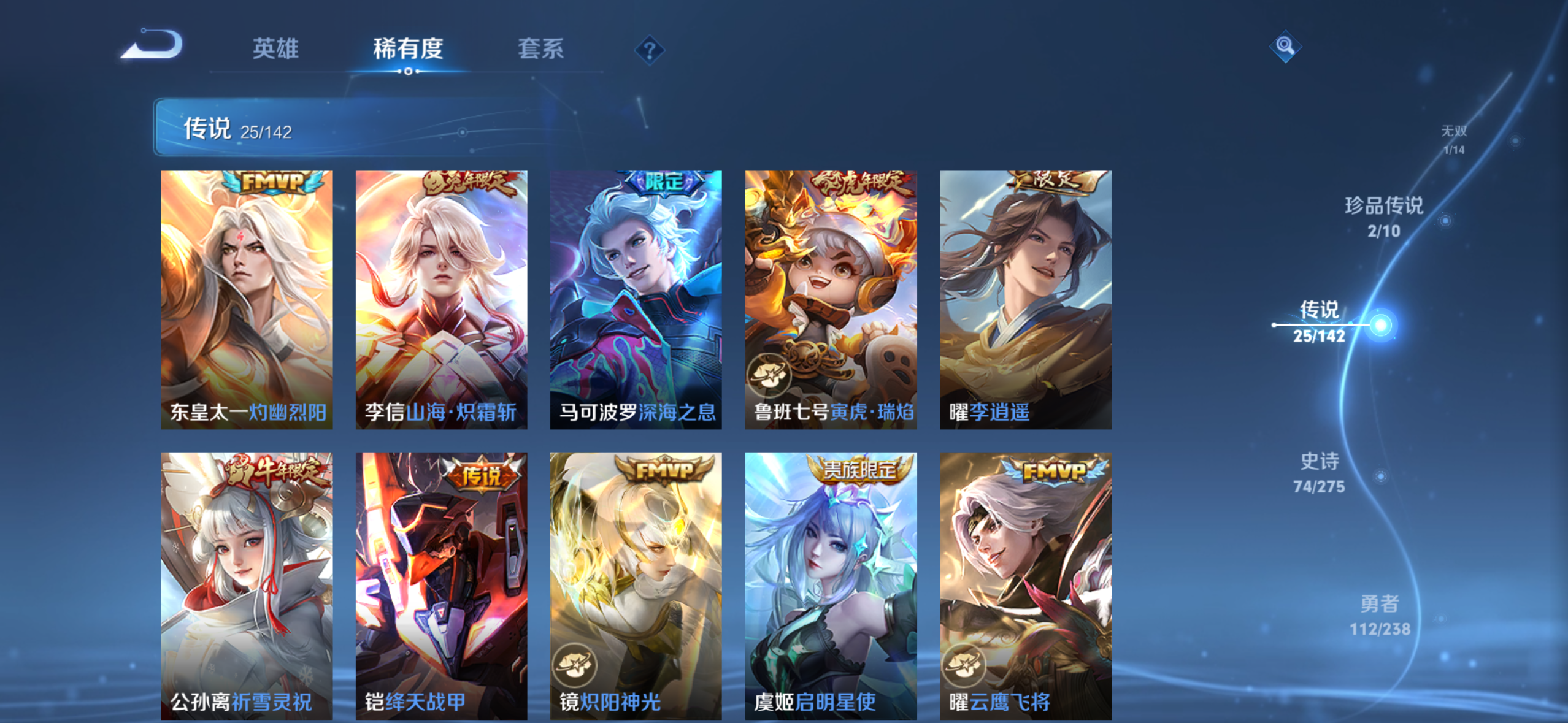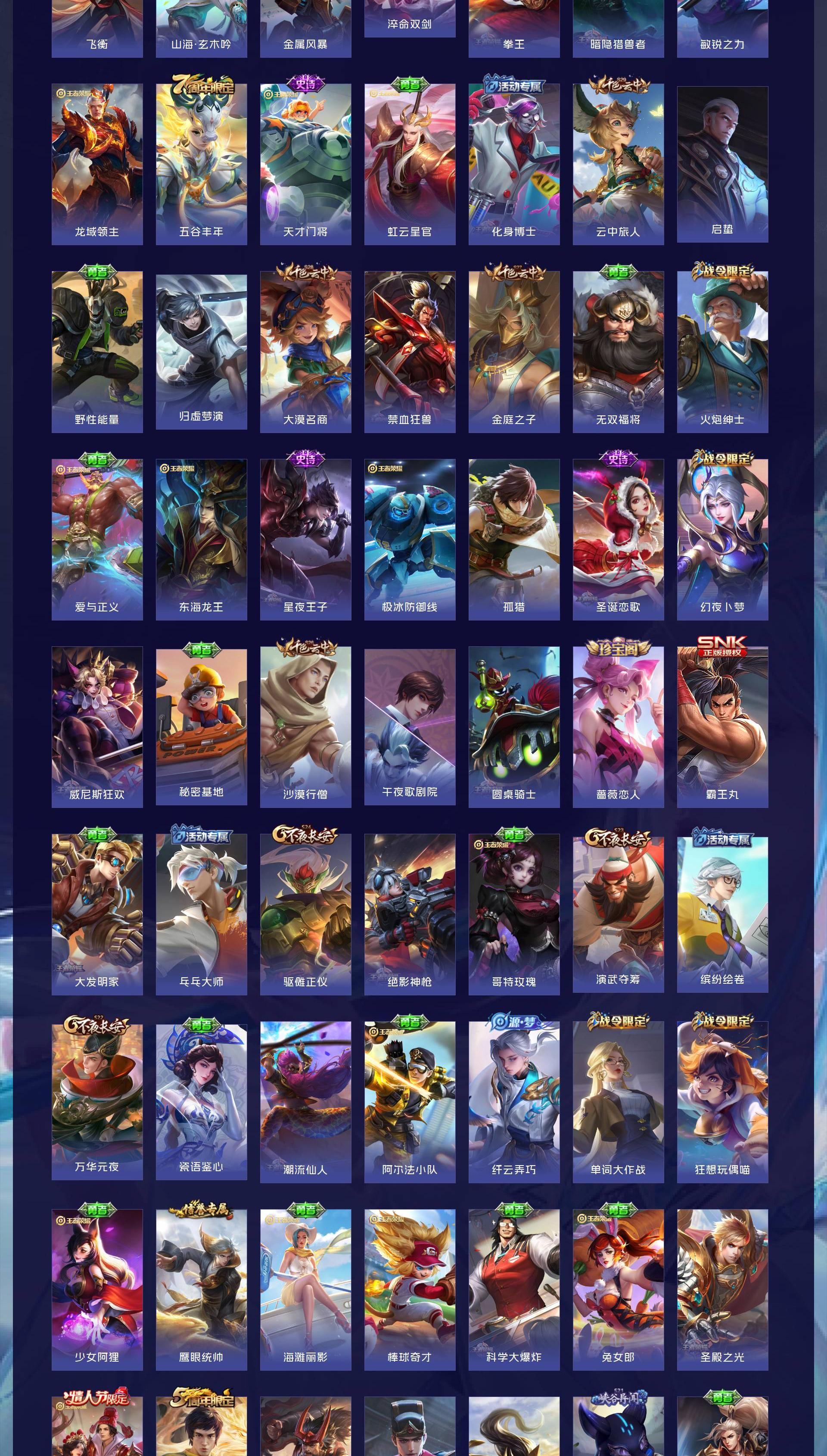 V8 皮肤268 英雄126 最强王者 荣耀典藏2 无双皮肤1 珍品传说2 传说26 其他皮肤244