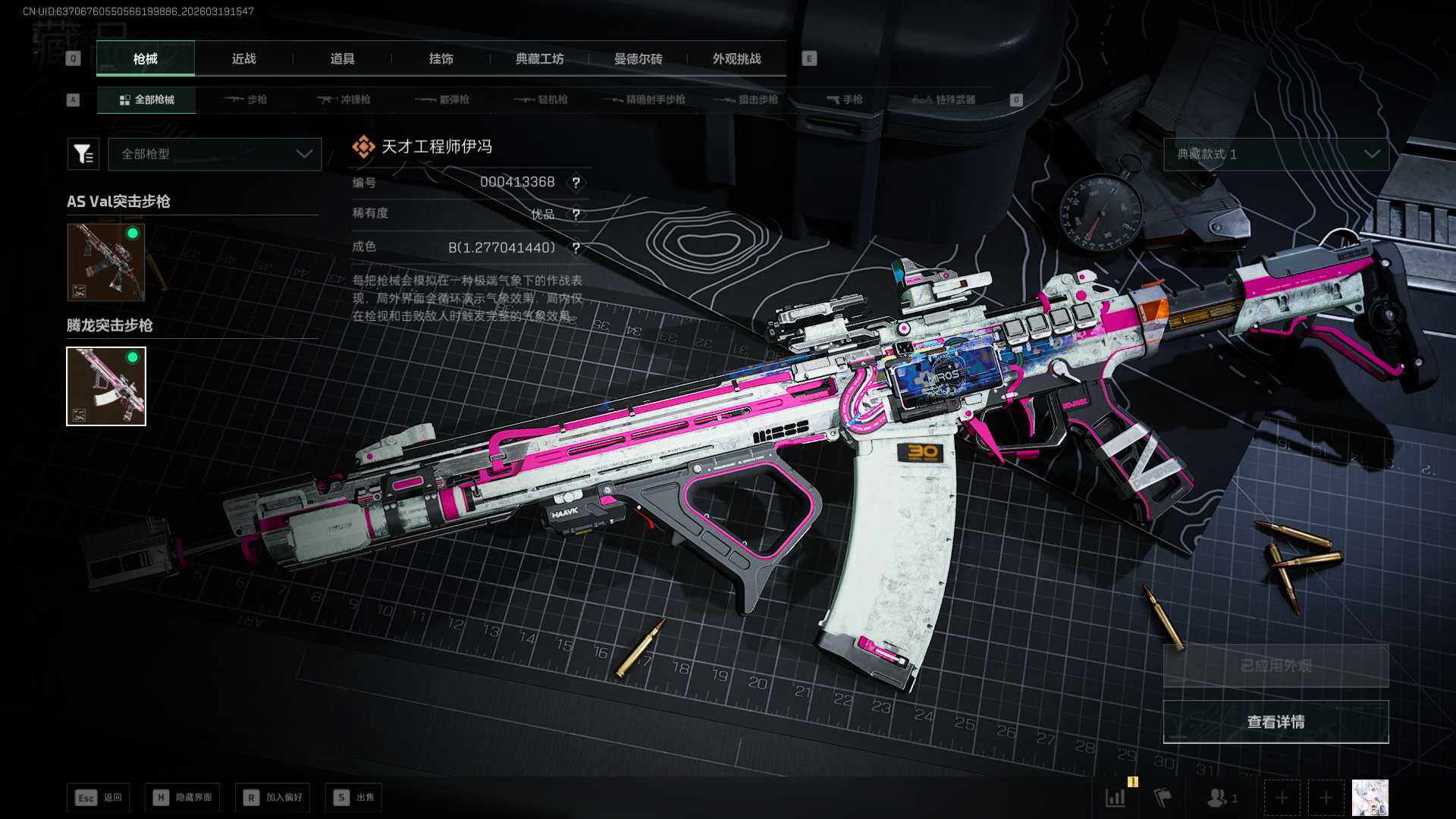 【典藏外观成色】:腾龙突击步枪-气象感应(优品B),AS Val突击步枪-悬赏令(优品C