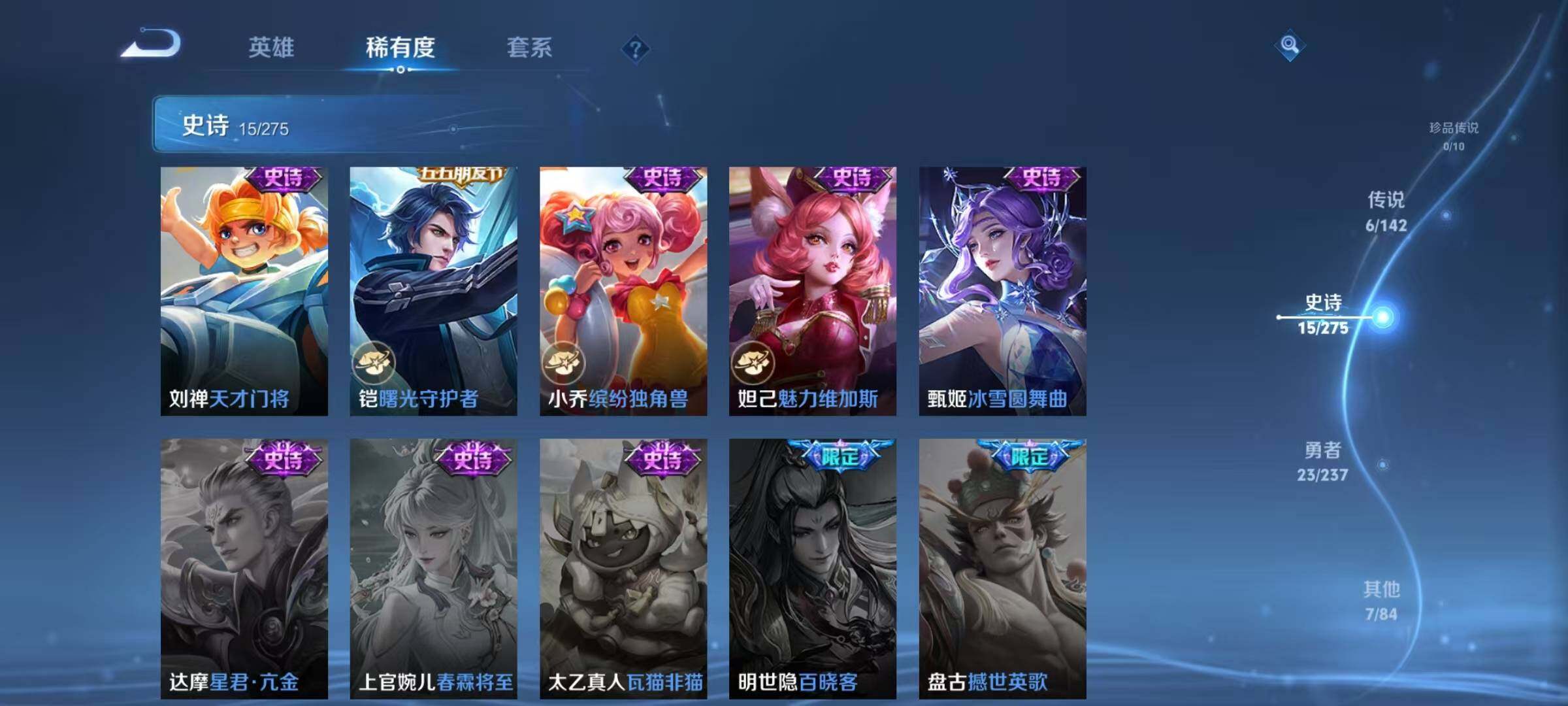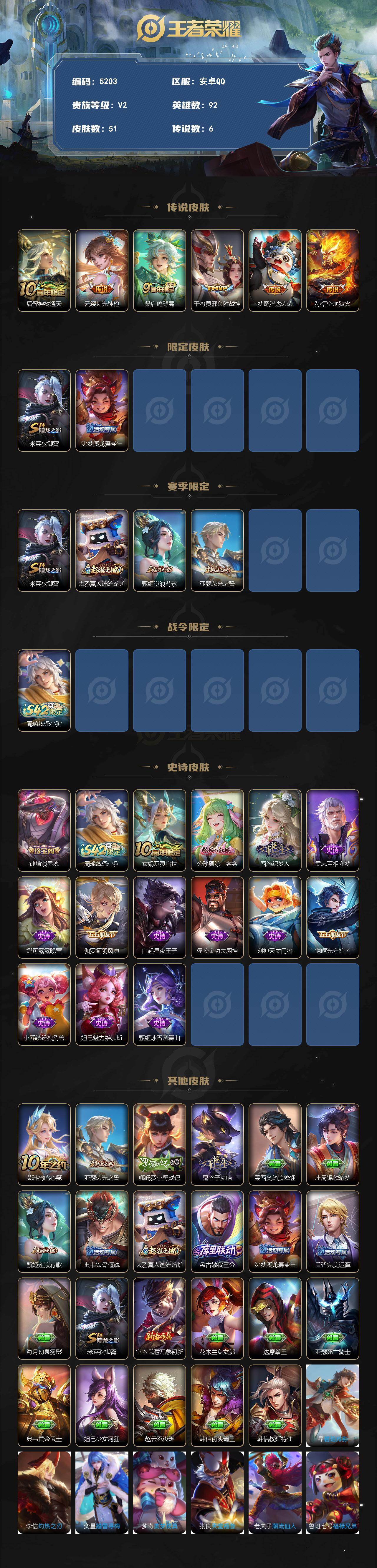 安卓Q-V2-尊贵铂金IV段位-92英雄-51皮肤-6传说-14史诗【传说皮