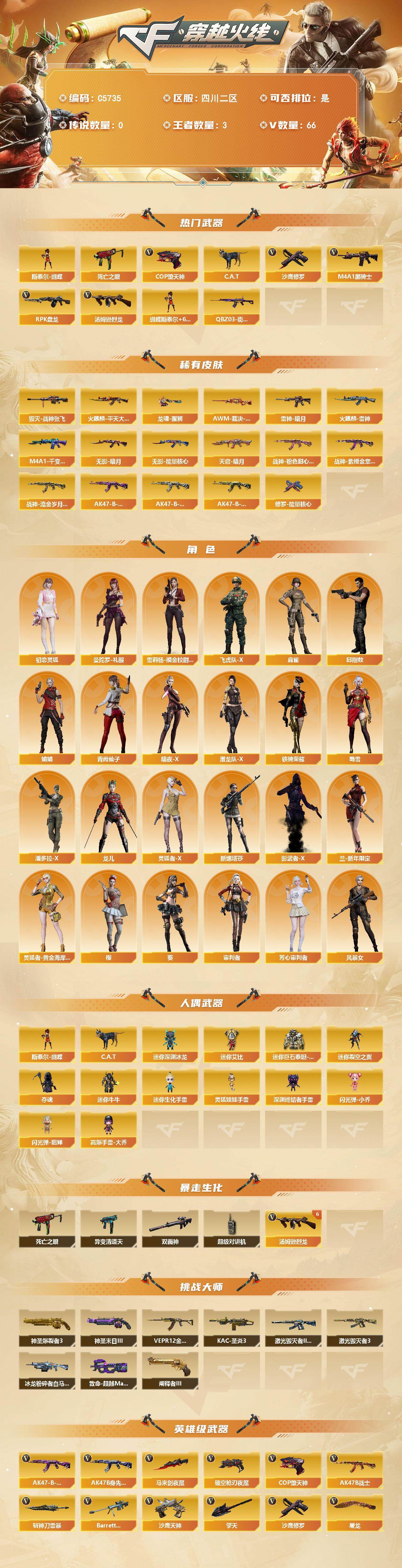 【C5735】四川二区-70V-3王者武器数-0炫金武器数