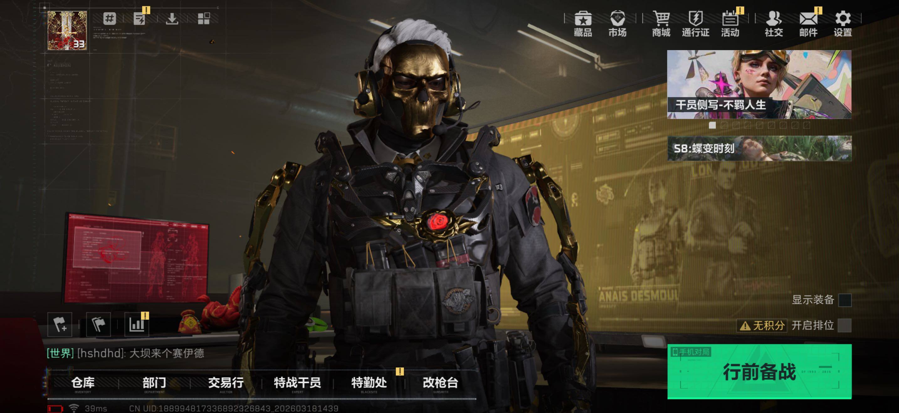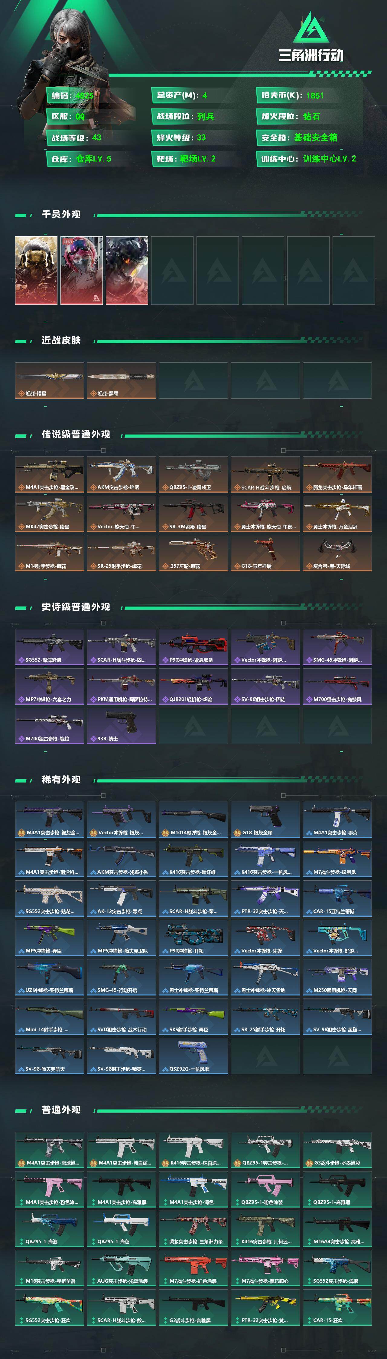4m总资产-1851k哈夫币-33烽火等级-钻石-43战场等级-列兵【干员外