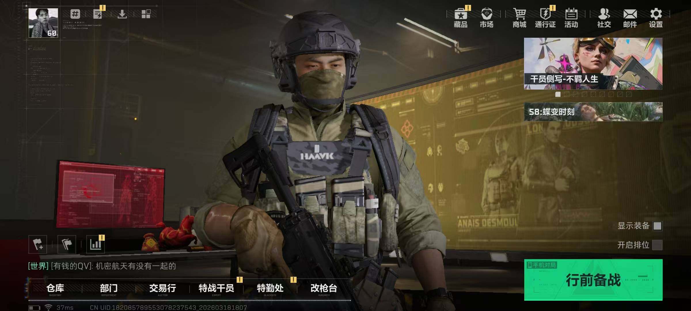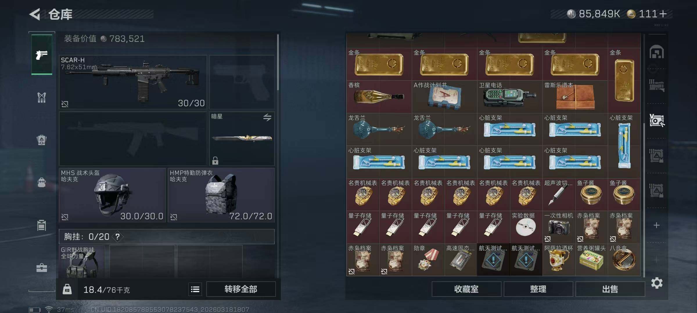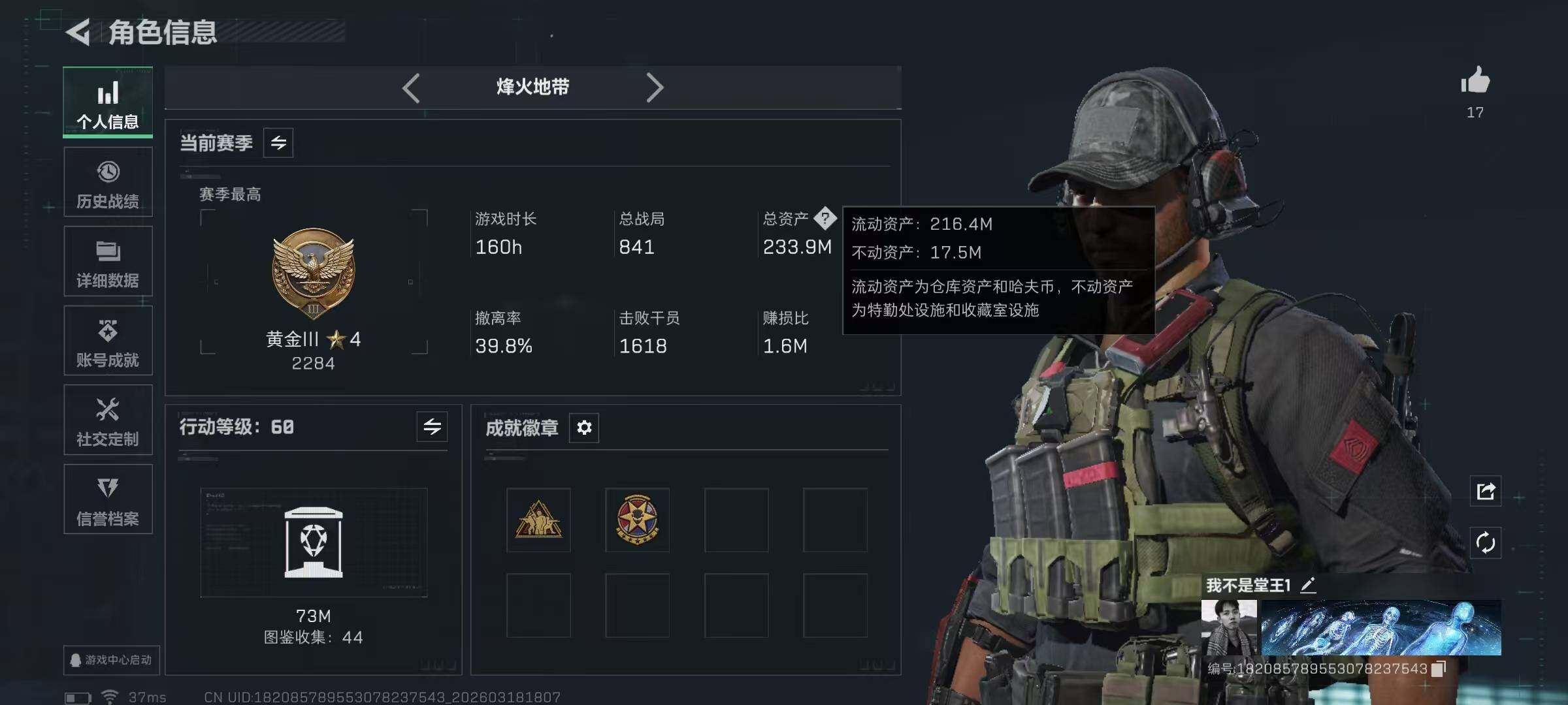 233m总资产-85849k哈夫币-60烽火等级-黄金-15战场等级-上等兵