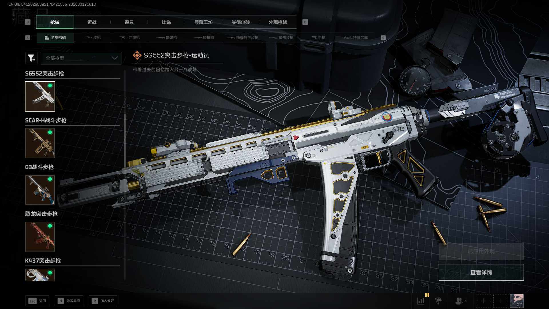 【传说外观】:M4A1突击步枪-蚀金玫瑰,AKM突击步枪-锦绣,QBZ95-1突击步枪-凌霄戍卫,AUG突击步枪-悠然茶歇,SG552突击步枪-运动员,SCAR-H战斗步枪-启航,G3战斗