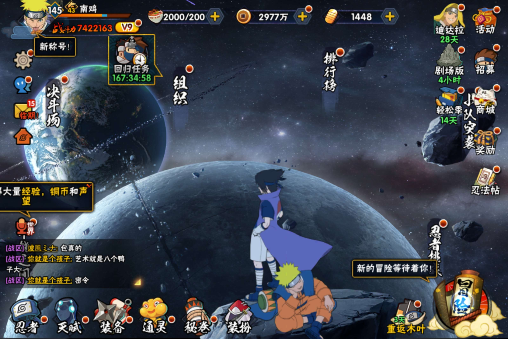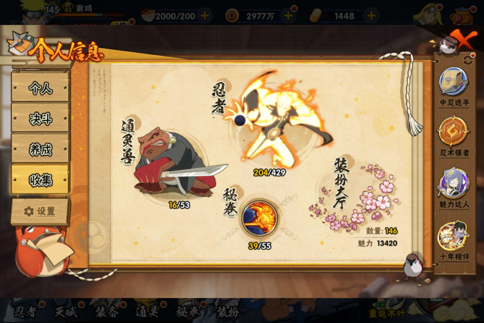 安卓QQ-v9-中忍-742w战力捡漏号-到手即可畅玩-漩涡鸣人「九喇嘛连结」-波风水门「九喇嘛连结」-千手柱间「秽土转生」-宇智波鼬「秽土转生」-宇智波佐助「永恒万花筒」-纲手「妖怪奇谭」-神秘面具男「忍者之路」-小南「新春限定」-小南「神驹佑将」-S忍者数:18- A忍者数:39