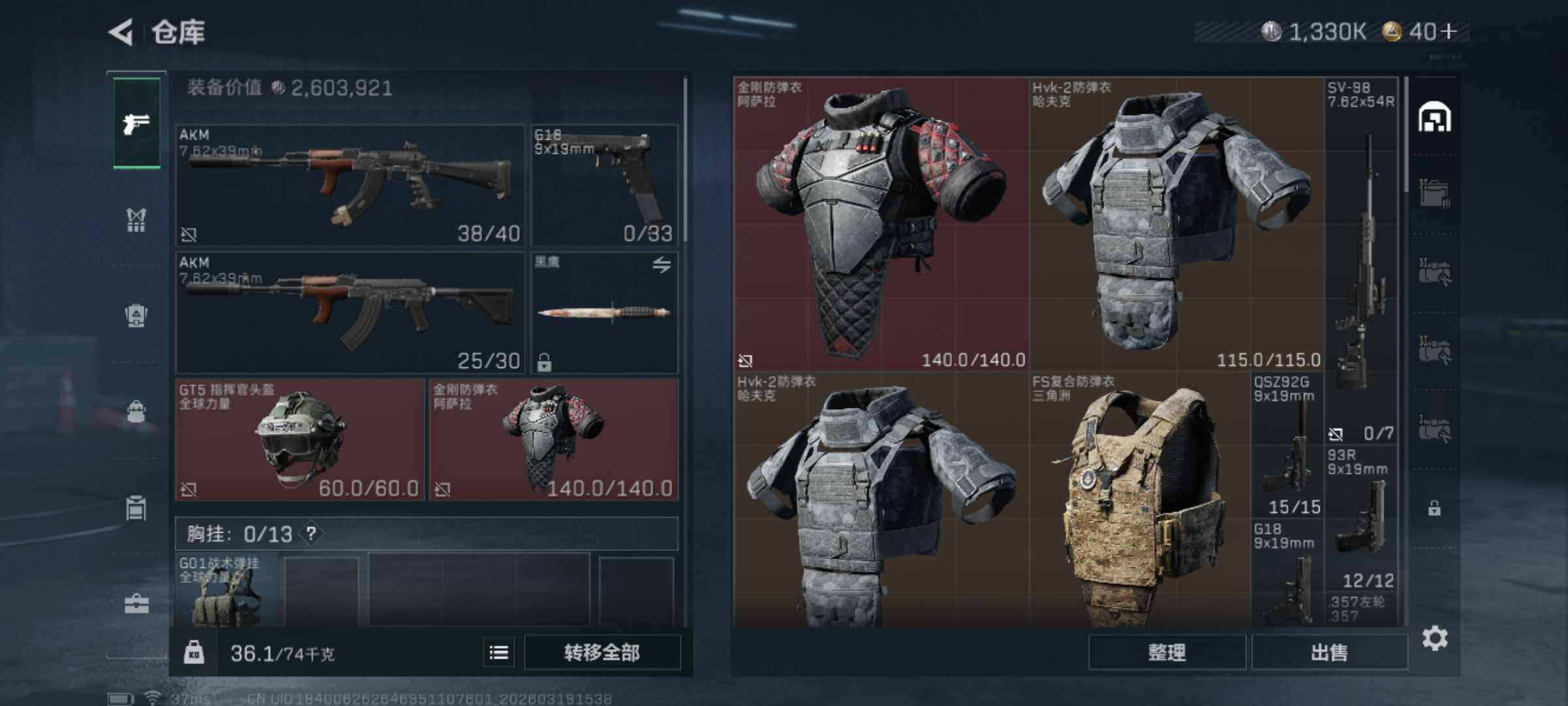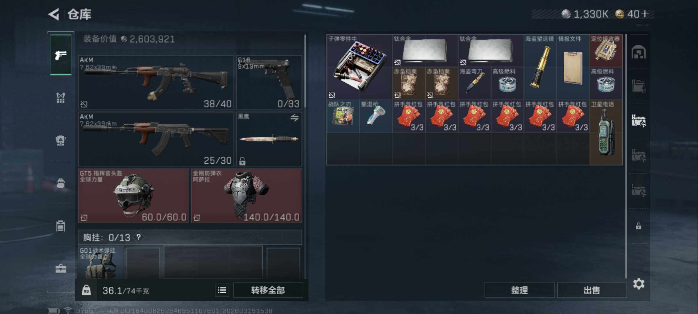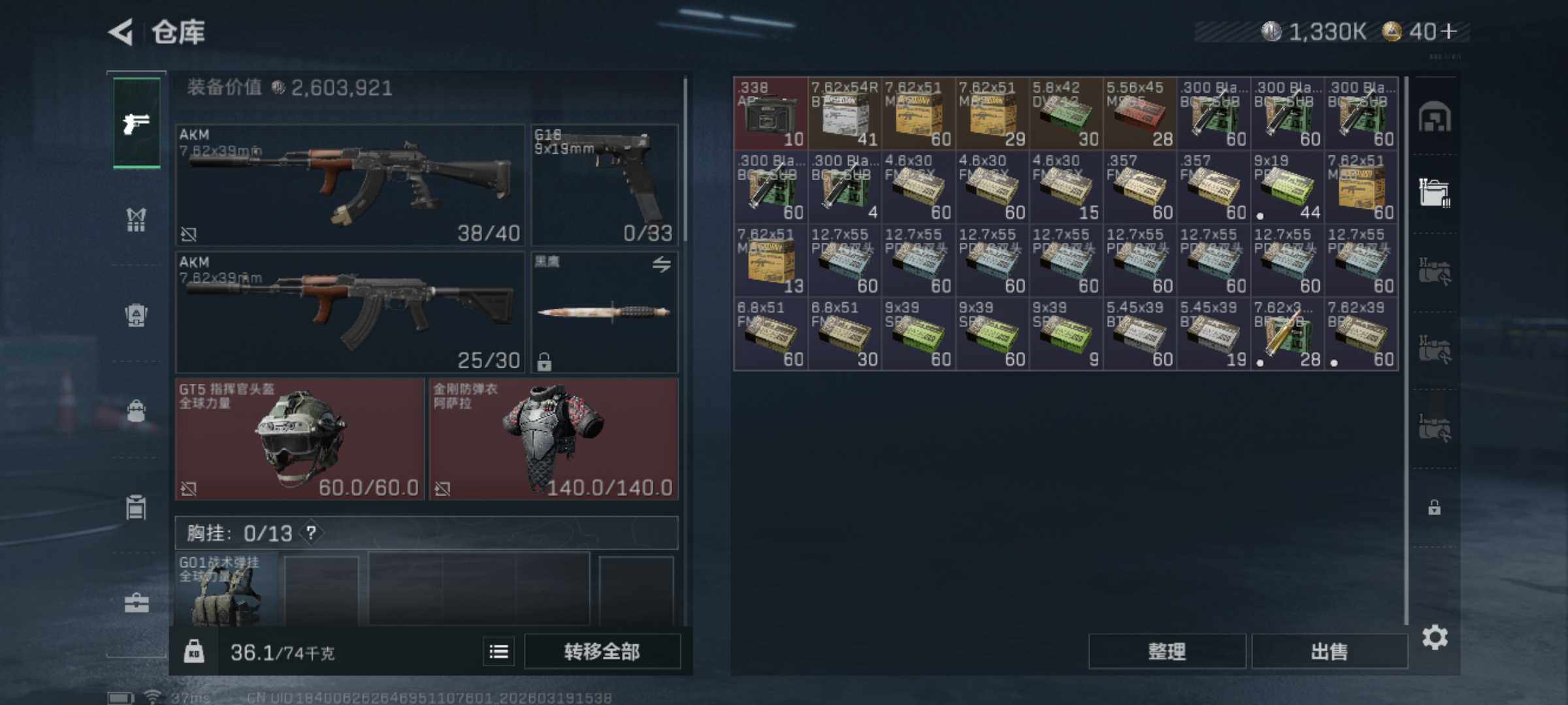 31m总资产-1330k哈夫币-30烽火等级-白银-1战场等级-无军衔 ws0136