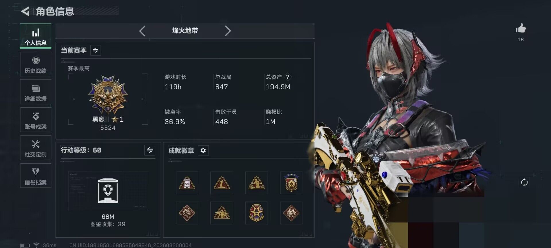 总资产(M):194M/哈夫币(K):2932K
