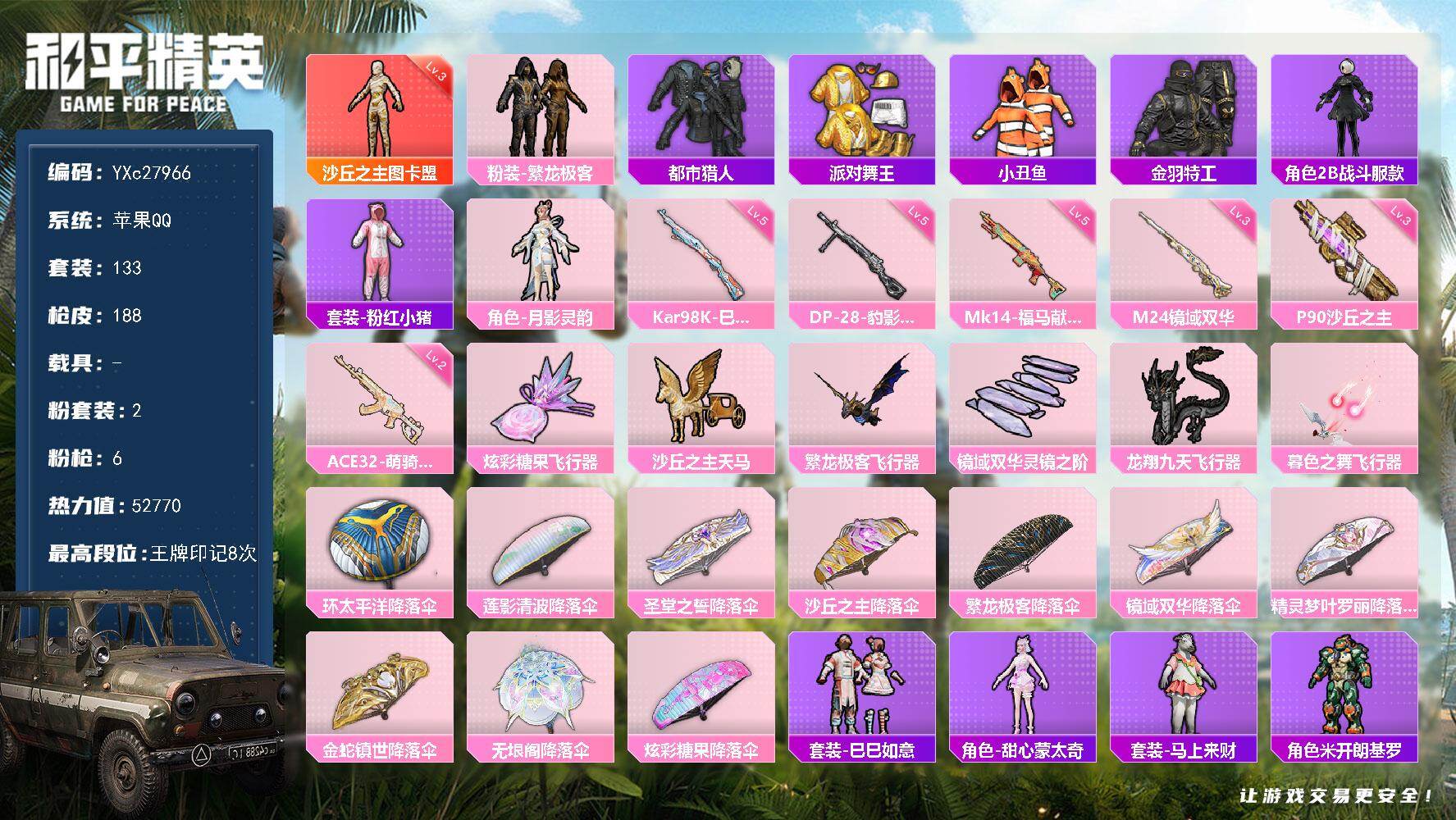 苹果Q-1红装4稀有2粉装6特效枪11热门133套装188枪皮 8印记 历史卓越王牌11星