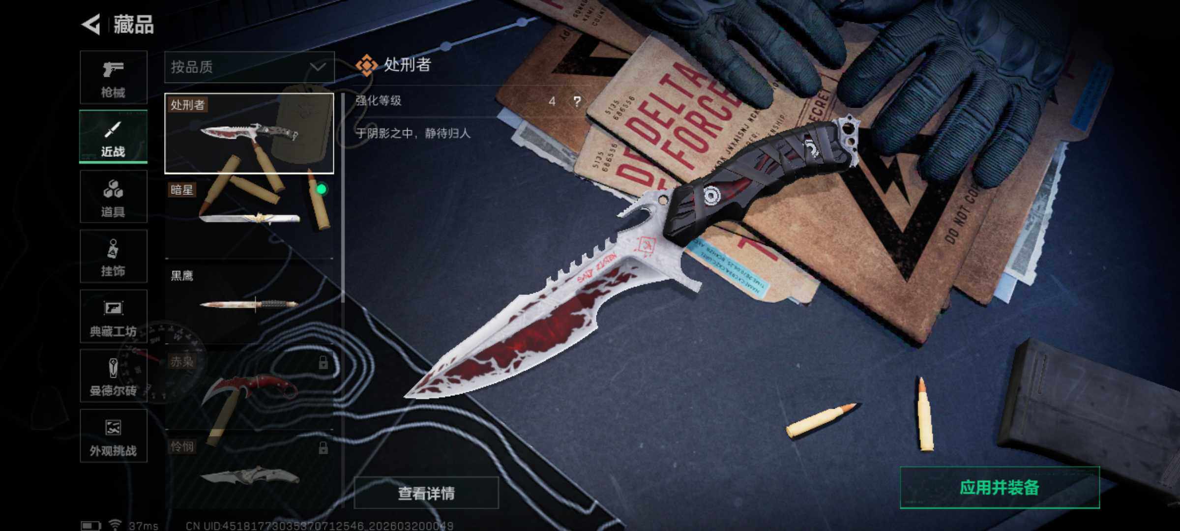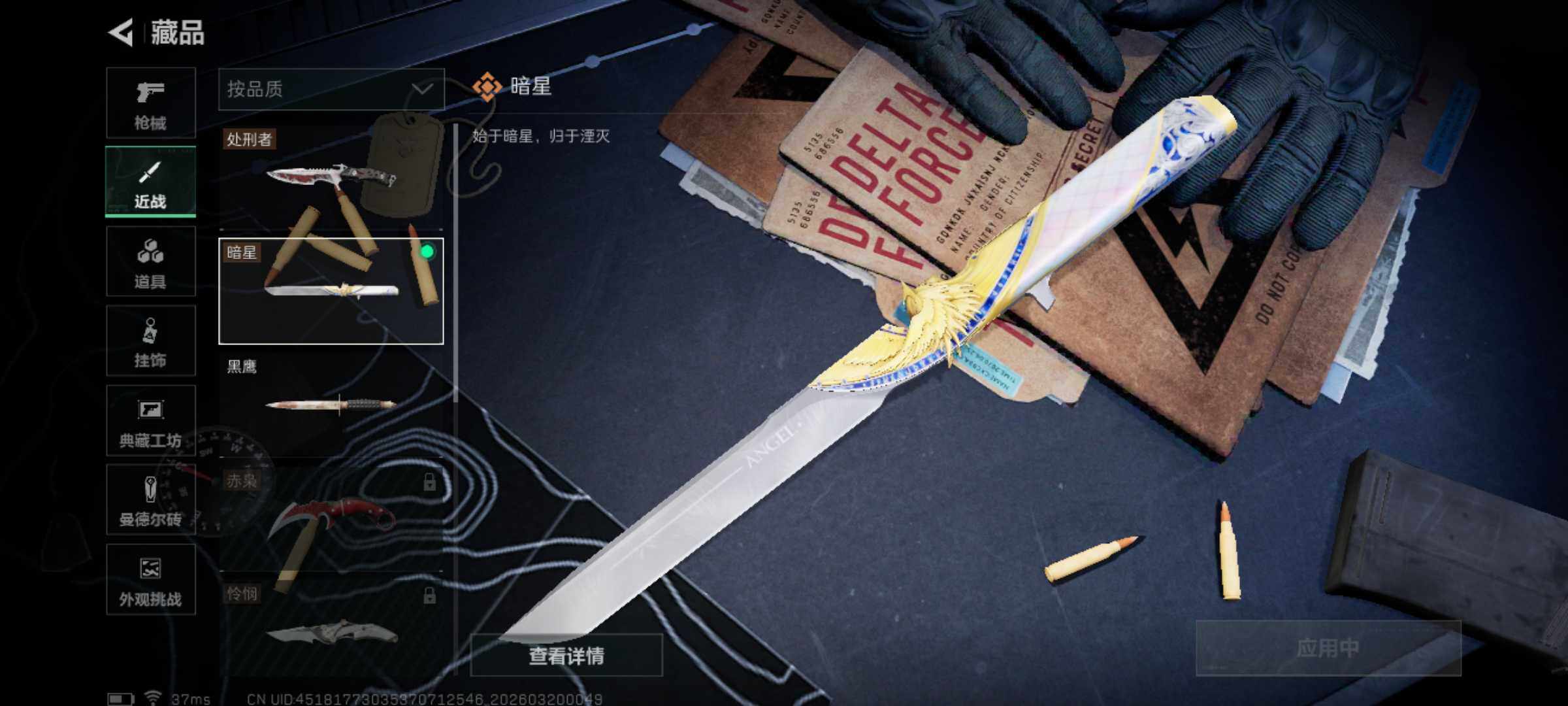【近战皮肤】:近战-暗星,近战-处刑者4级,近战-黑鹰