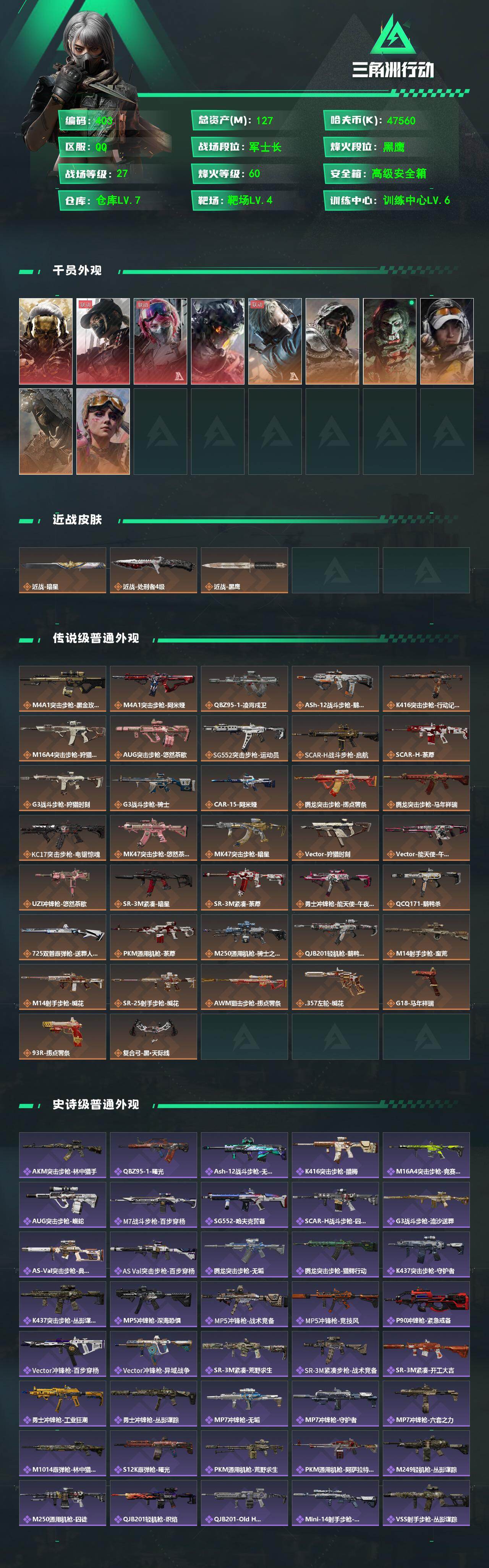 127m总资产-47560k哈夫币-60烽火等级-黑鹰-27战场等级-军士长ws0137
