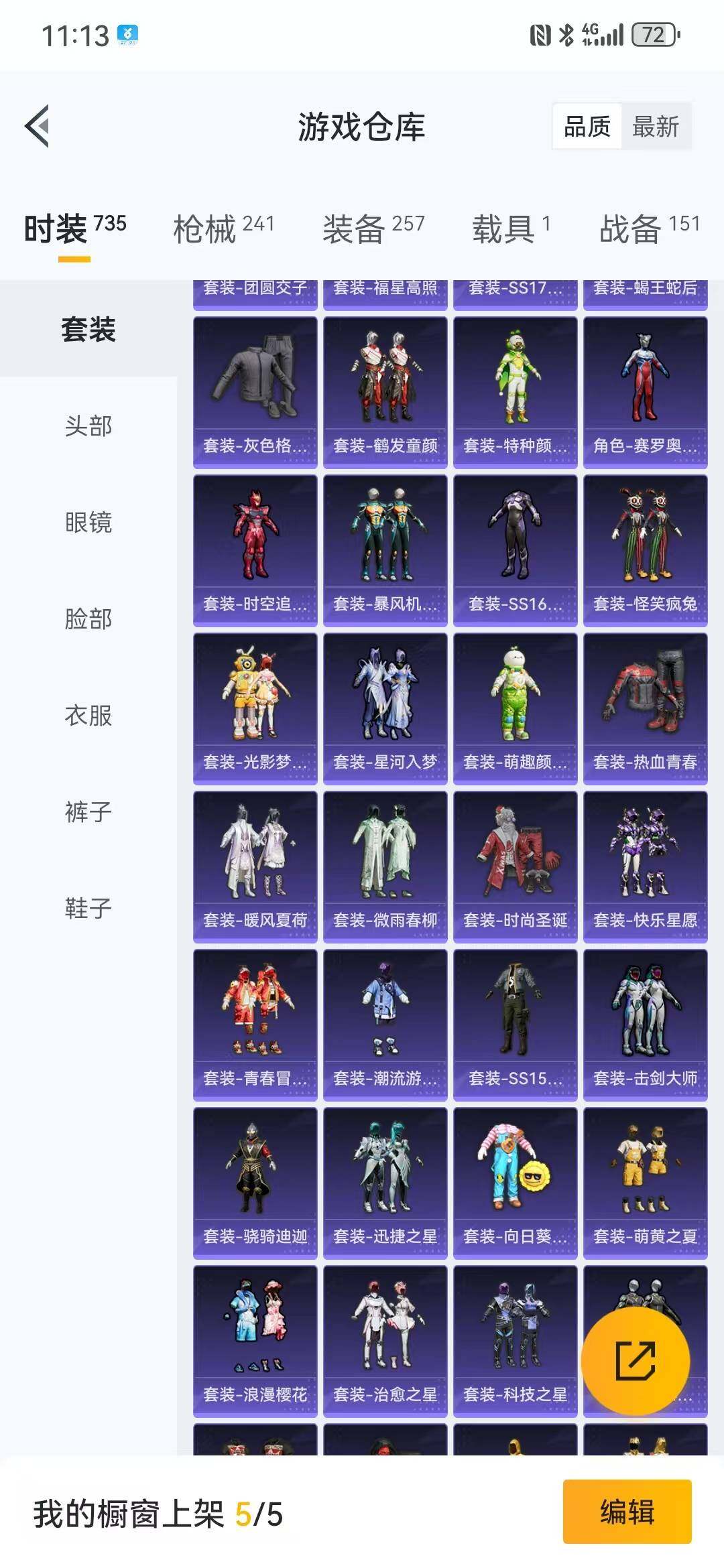 192套装/枪械7/装备257/载具1/战备151/王牌印记9/