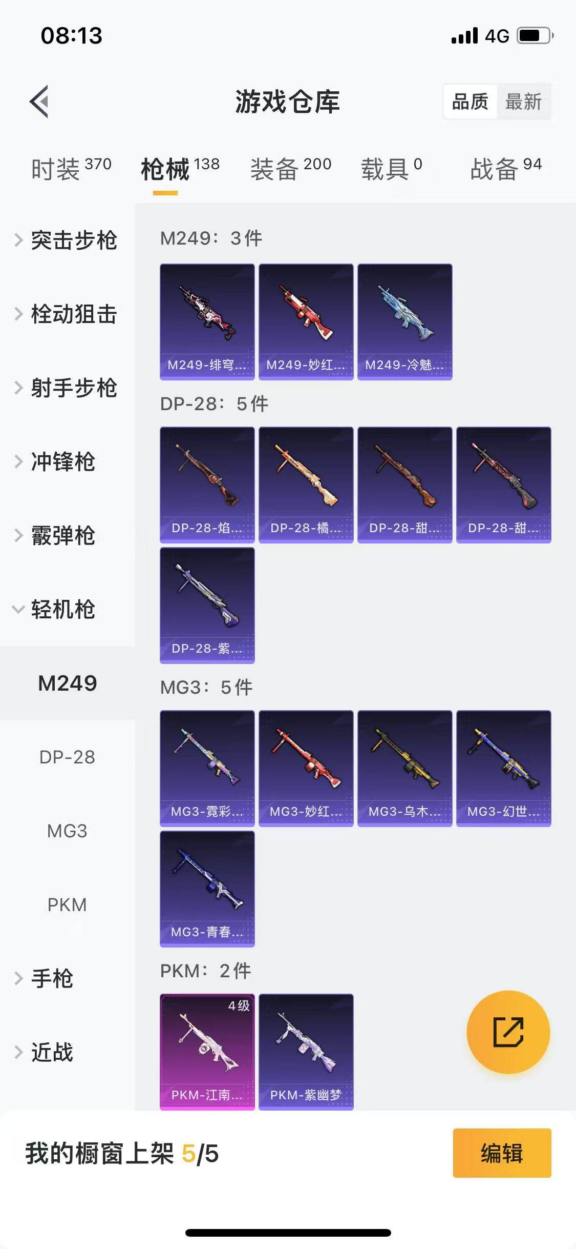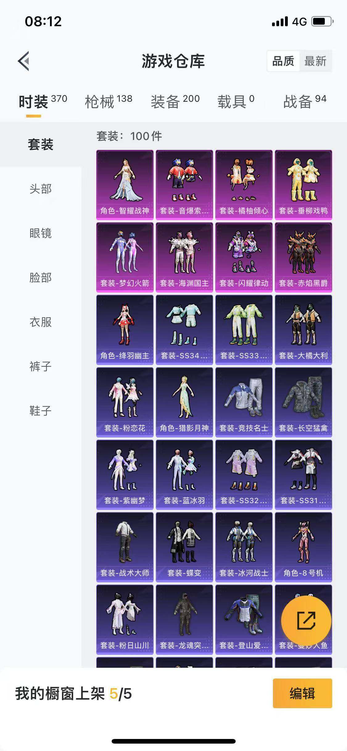 100套装/枪械5/装备200/战备94/王牌印记11/热力值47301