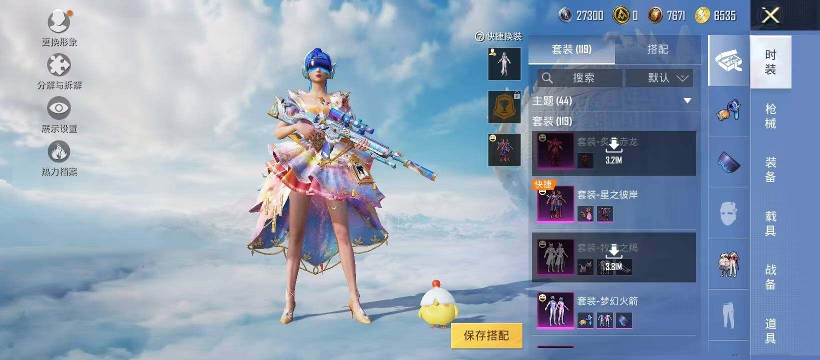【HP2863】119套装/枪械4/装备263/战备143/王牌印记11/热力值57580/五级AKM-绿萝繁花/五级Kar98K-巳巳如意/七级AMR-炫光之旅/七级MK12-雪月幻音/套装-小丑鱼/粉装-宝贝奶油派/粉装-梦幻火箭/粉装-星之彼岸/粉装-炙焰赤龙/粉装-霁雪冰心/粉装-未来歌姬/角色-阿尔茜/粉装-炫光之旅/粉装-牧神之羯/角色-宙之时溯/粉装-星穹咏叹调/角色-冷漠罗丽/AKM-绿萝繁花/Kar98K-巳巳如意/AMR-炫光之旅/MK12-雪月幻音/甜心宝贝降落伞/梦幻火箭