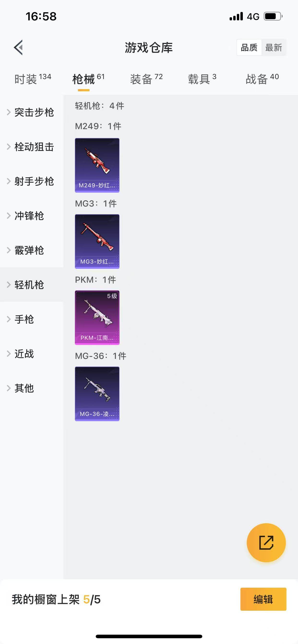 33套装/枪械3/装备72/载具3/战备40/王牌印记2/热力值